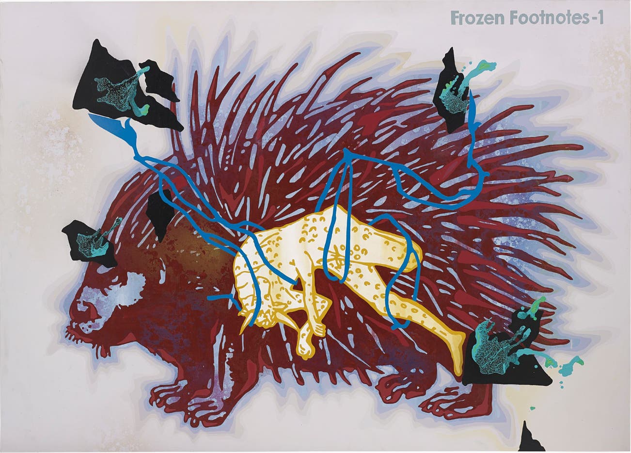 Titled 'Frozen Footnotes-1' upper left. Signed, titled and dated '2005 JITISH KALLAT FROZEN FOOTNOTES-1' on the overlap.