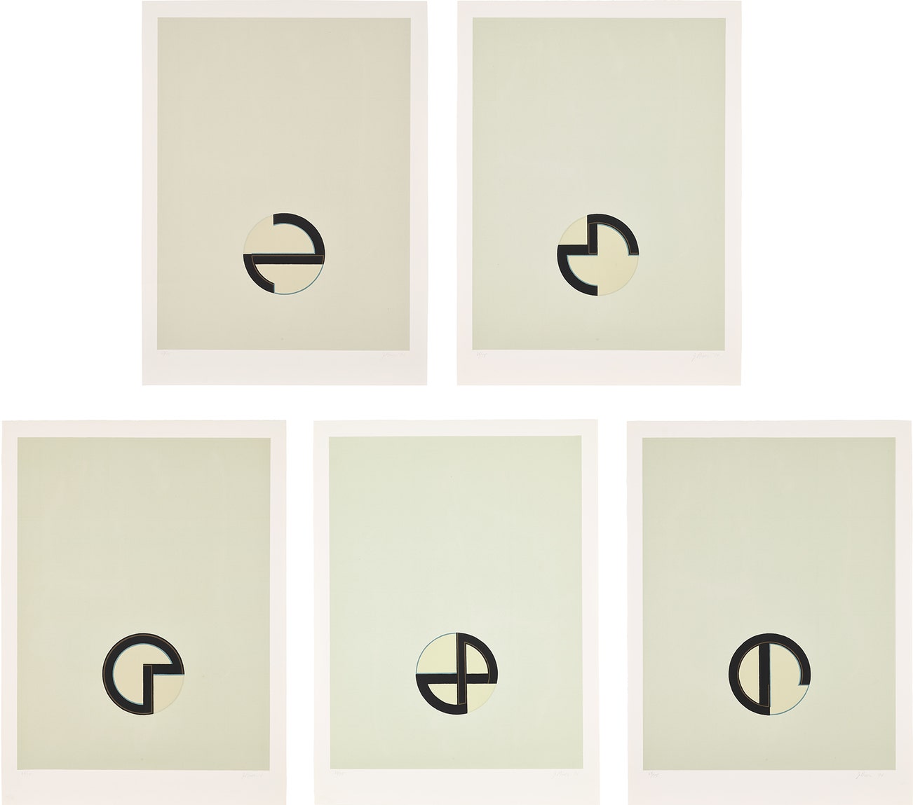 Five screenprints in colors, on J.B. Green handmade paper, with full margins.