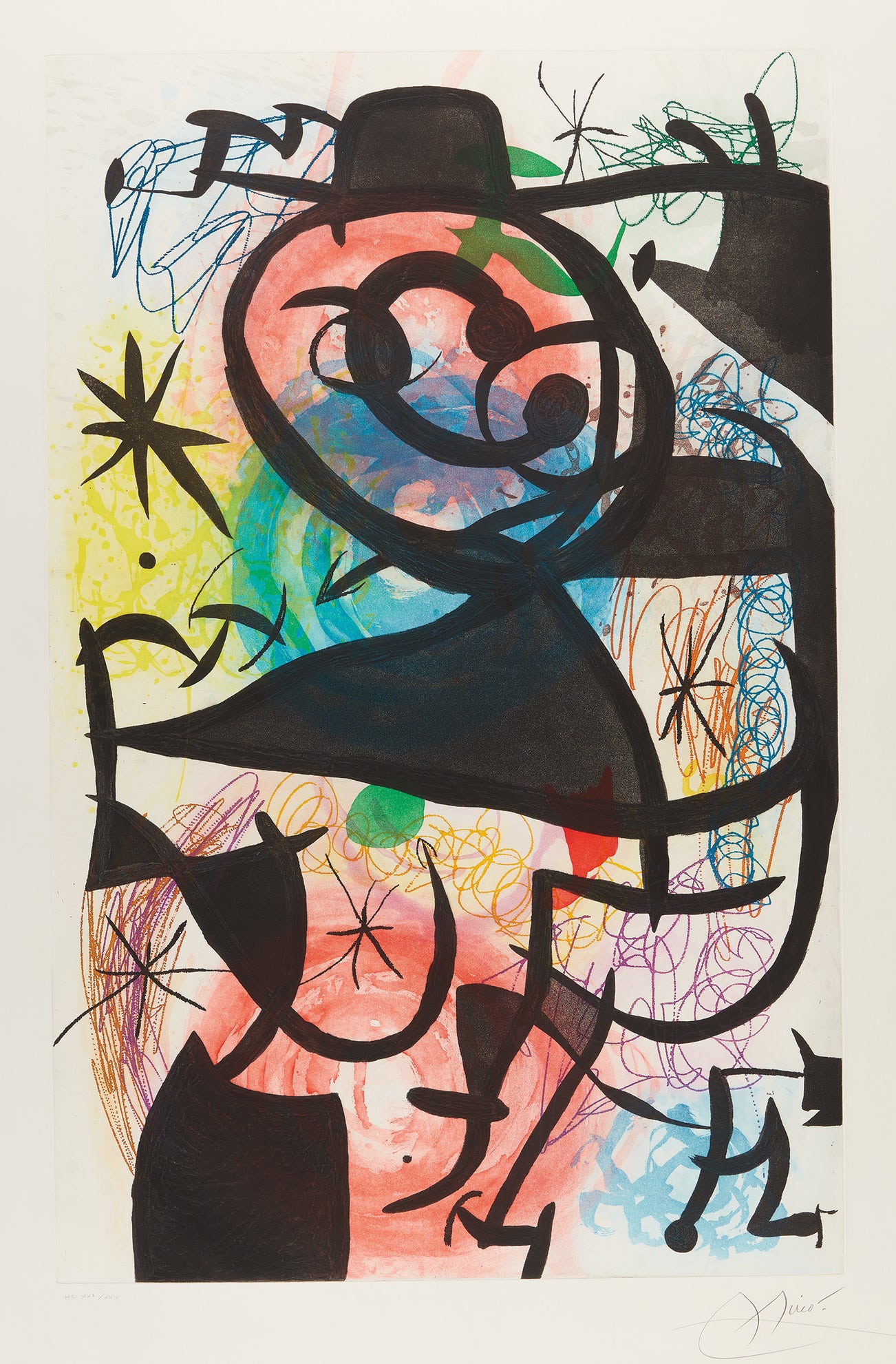Signed and numbered 'HC XXI/XXIV' in pencil (an hors commerce, the edition was 50 and some artist's proofs), authenticated by Rosa Maria Malet, director of the Fundació Joan Miró, Barcelona on the reverse and dated '5 Novembre 2008', published by Maeght, Paris, framed.