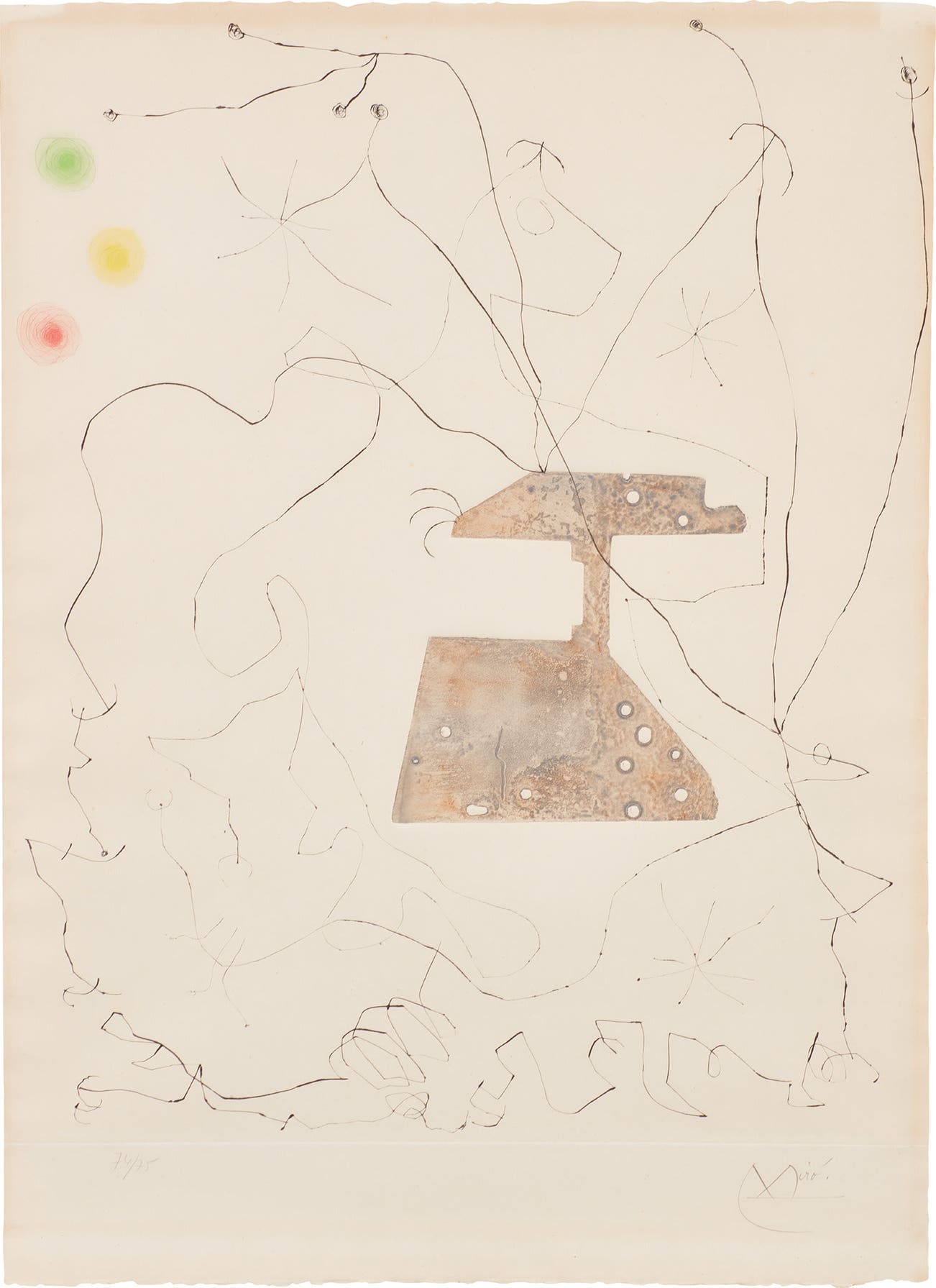 Drypoint with object embossing, on Arches paper, with margins.
