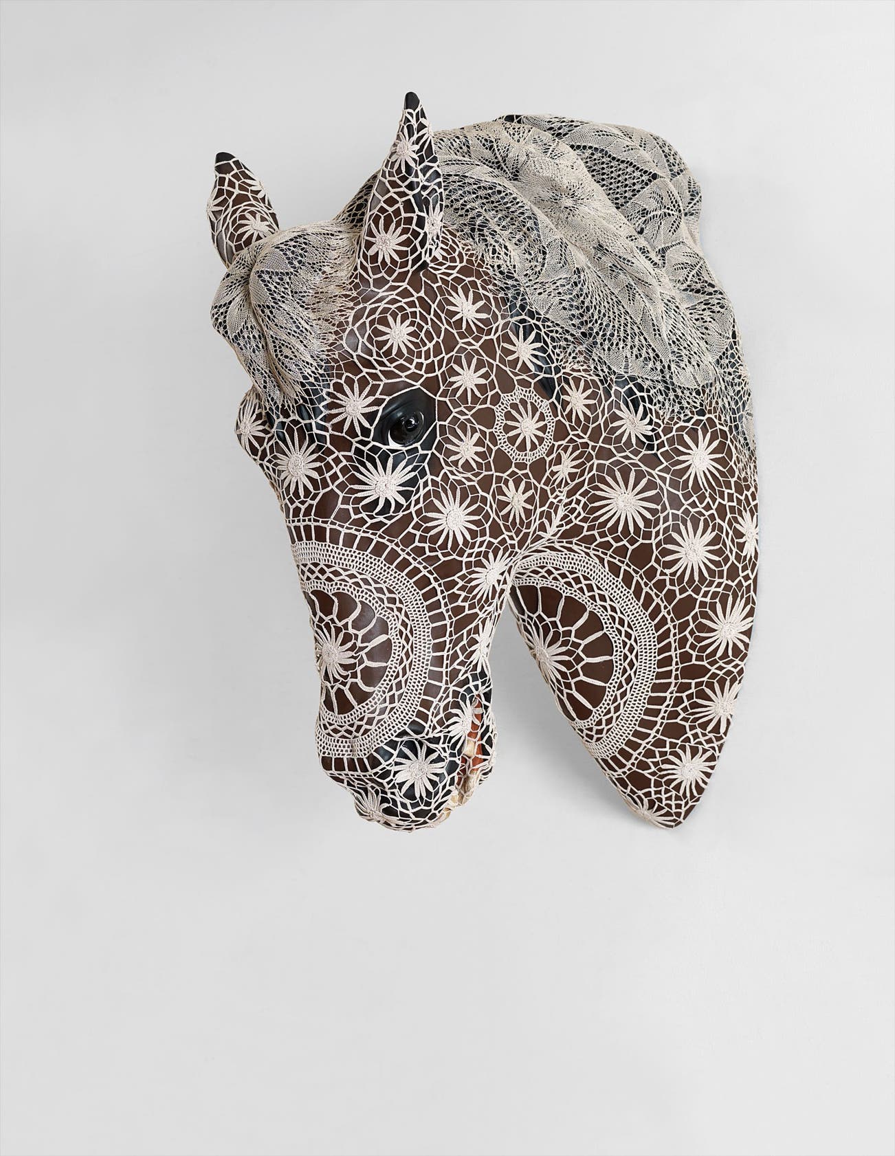 Rafael Bordalo Pinheiro acrylic painted faience and handmade cotton crochet