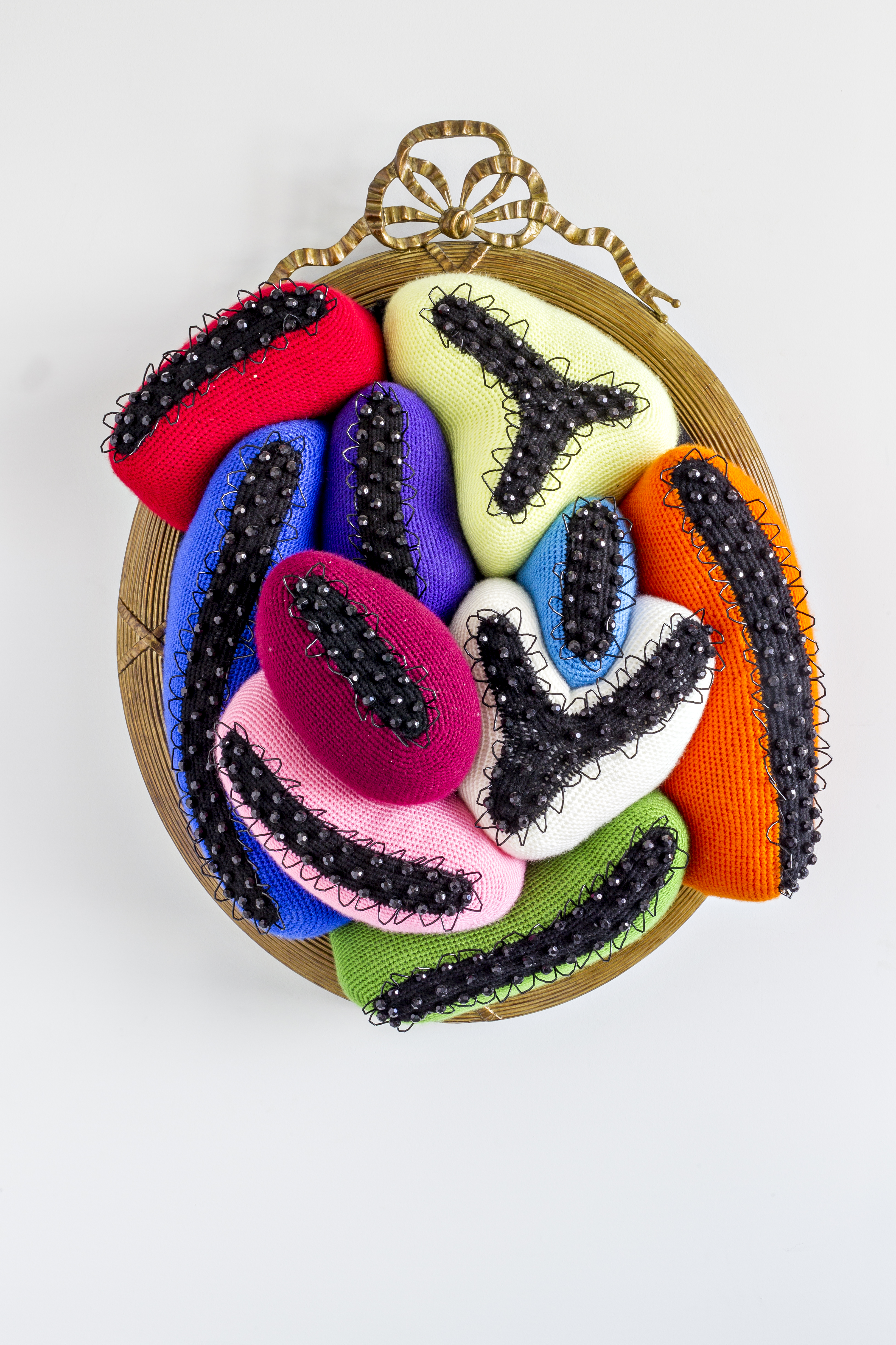 handmade woollen crochet, ornaments, gilt frame, polyester