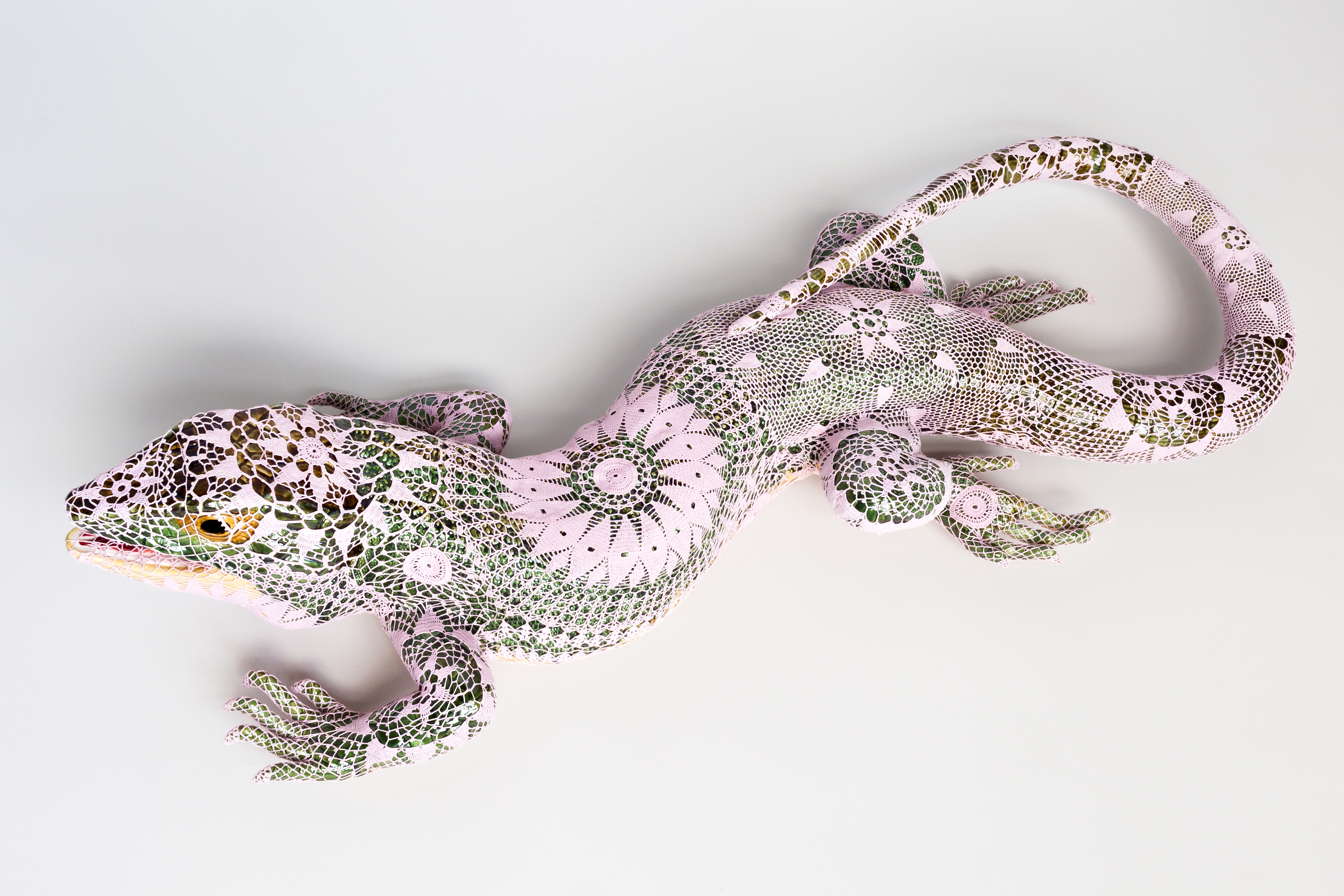 Rafael Bordalo Pinheiro faience painted with ceramic glaze, handmade cotton crochet