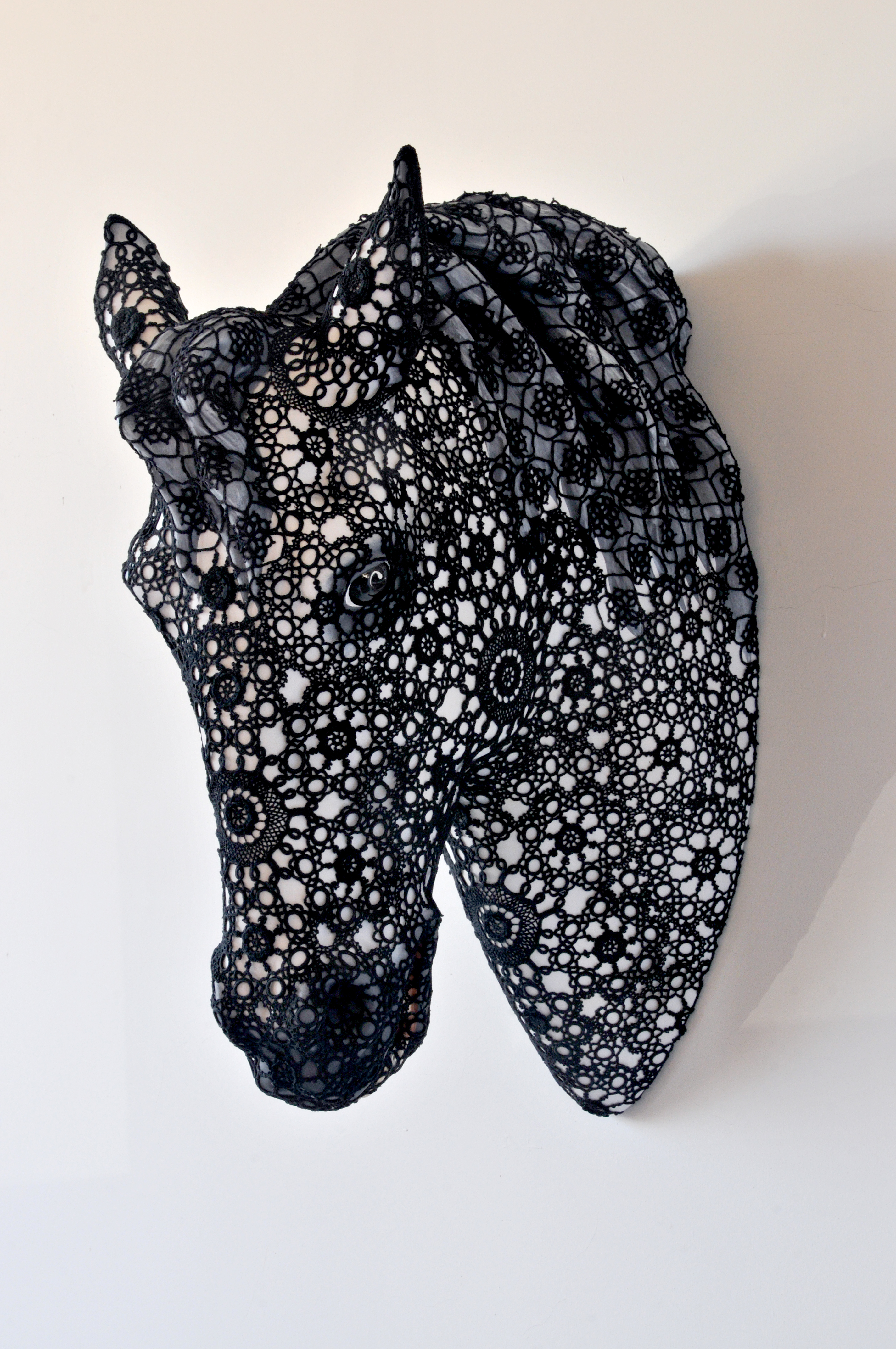 Rafael Bordalo Pinheiro acrylic painted faience, five needle lace, Azores crocheted lace