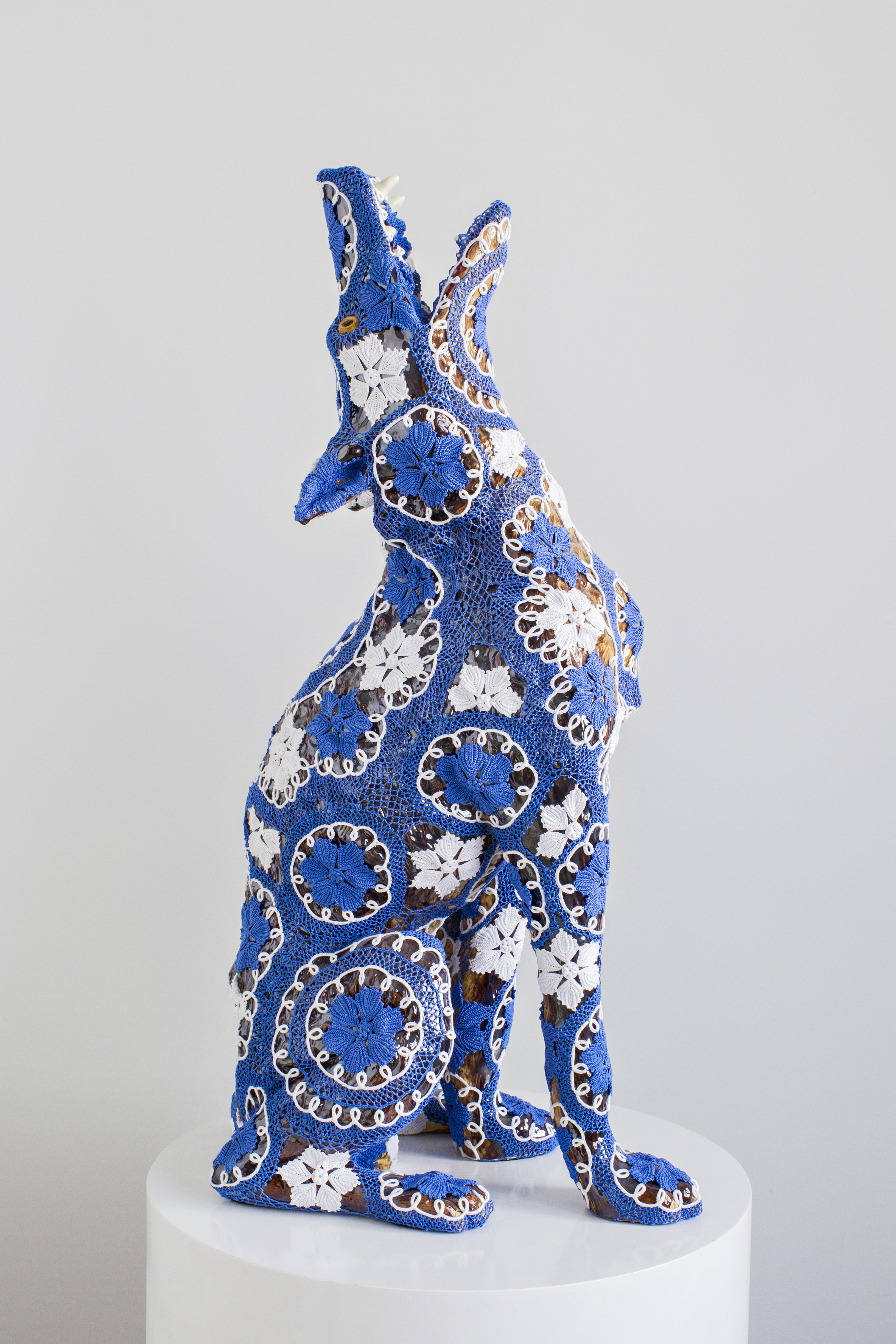 Rafael Bordalo Pinheiro faience painted with ceramic glaze, Azores crocheted lace