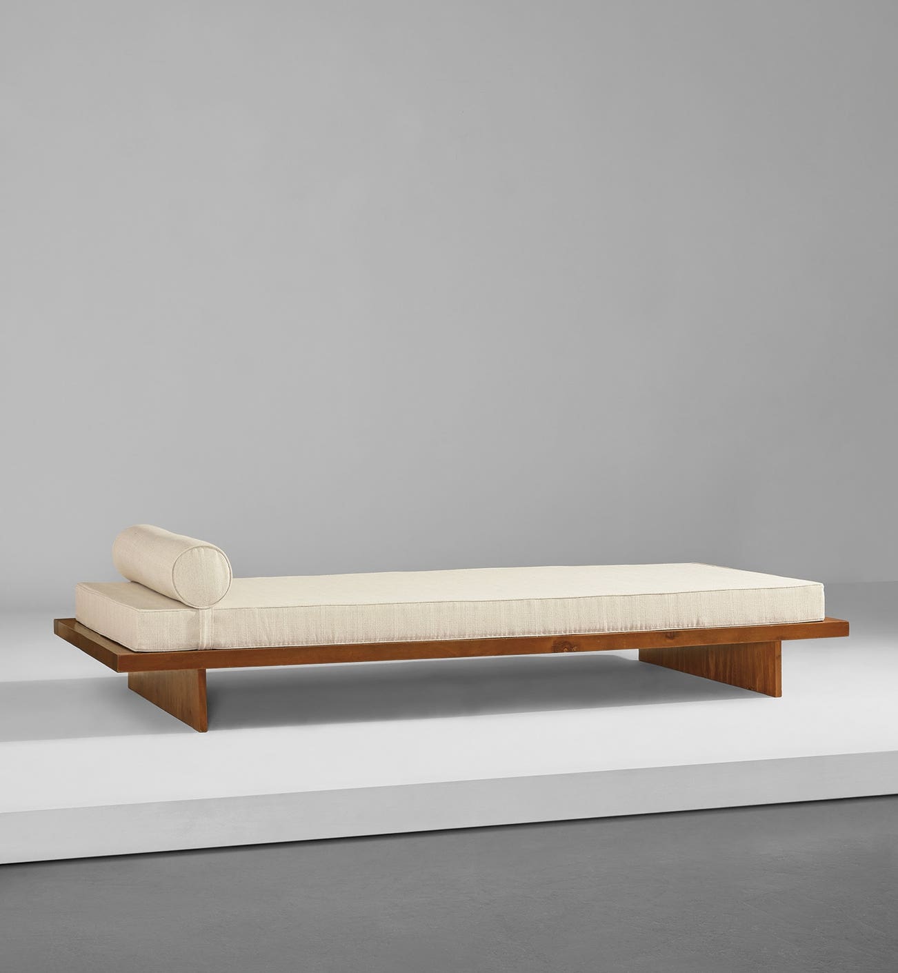 A trained painter and son of a cabinetmaker, Joaquim Tenreiro began designing furniture in the 1940s. By 1943 he had started his own furniture design company, opening offices in Rio de Janeiro and Copacabana, and, due to the increasing success of his designs, he opened another shop in 1953 in São Paolo. By the end of the 1950s, Tenreiro was employing approximately 100 craftsmen to construct his designs. The success of the business was evident among Brazilians, but the recognition and growing size of the company led to turmoil, resulting in its closing in the 1960s. Among the greatest of the Brazilian modernist designers, his work was defined by the structural simplicity and brilliant engineering evidenced in the present daybed. Though characteristic of his work, the present lot is a rare form for Tenriero with only a few other known examples, including one from a private estate from a family in Rio de Janiero.