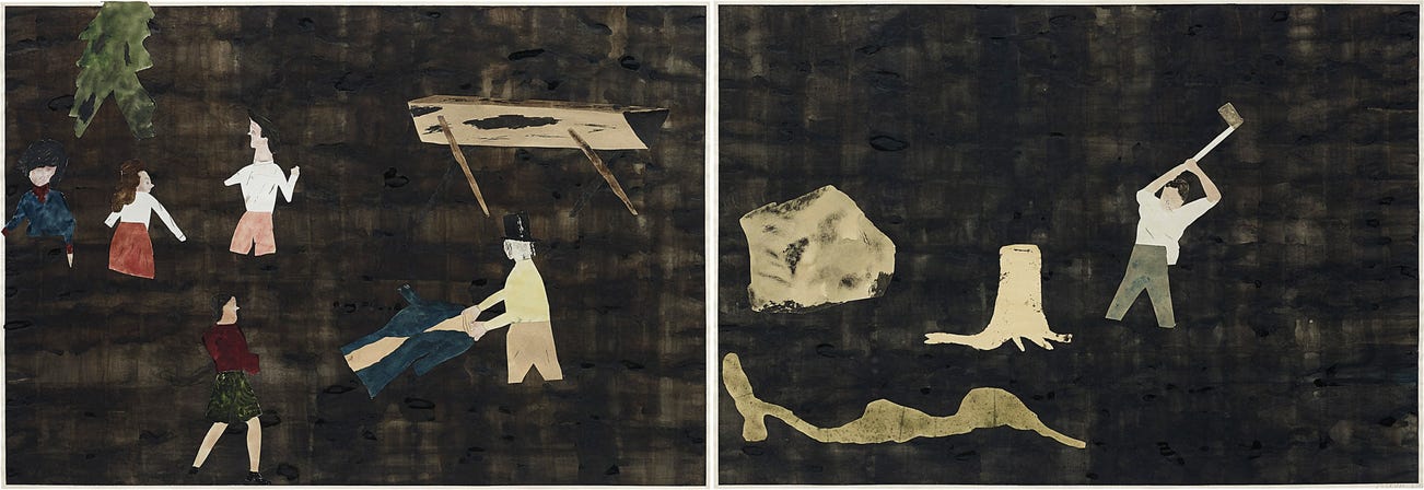 watercolour and graphite on paper collage and watercolour on paper, diptych