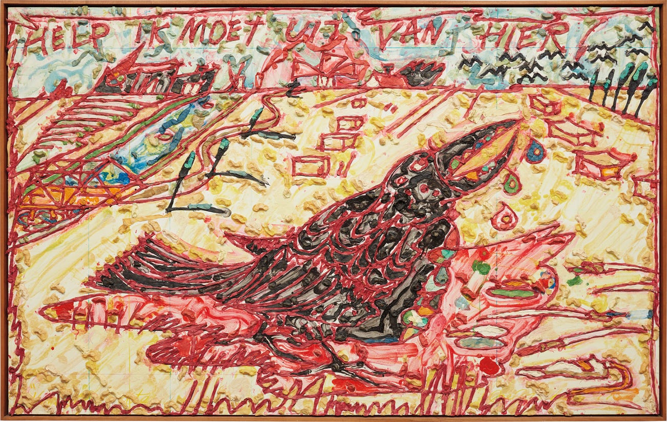 signed, titled and dated ""Help let me out of Here" 1977 Joe Zucker" on the reverse