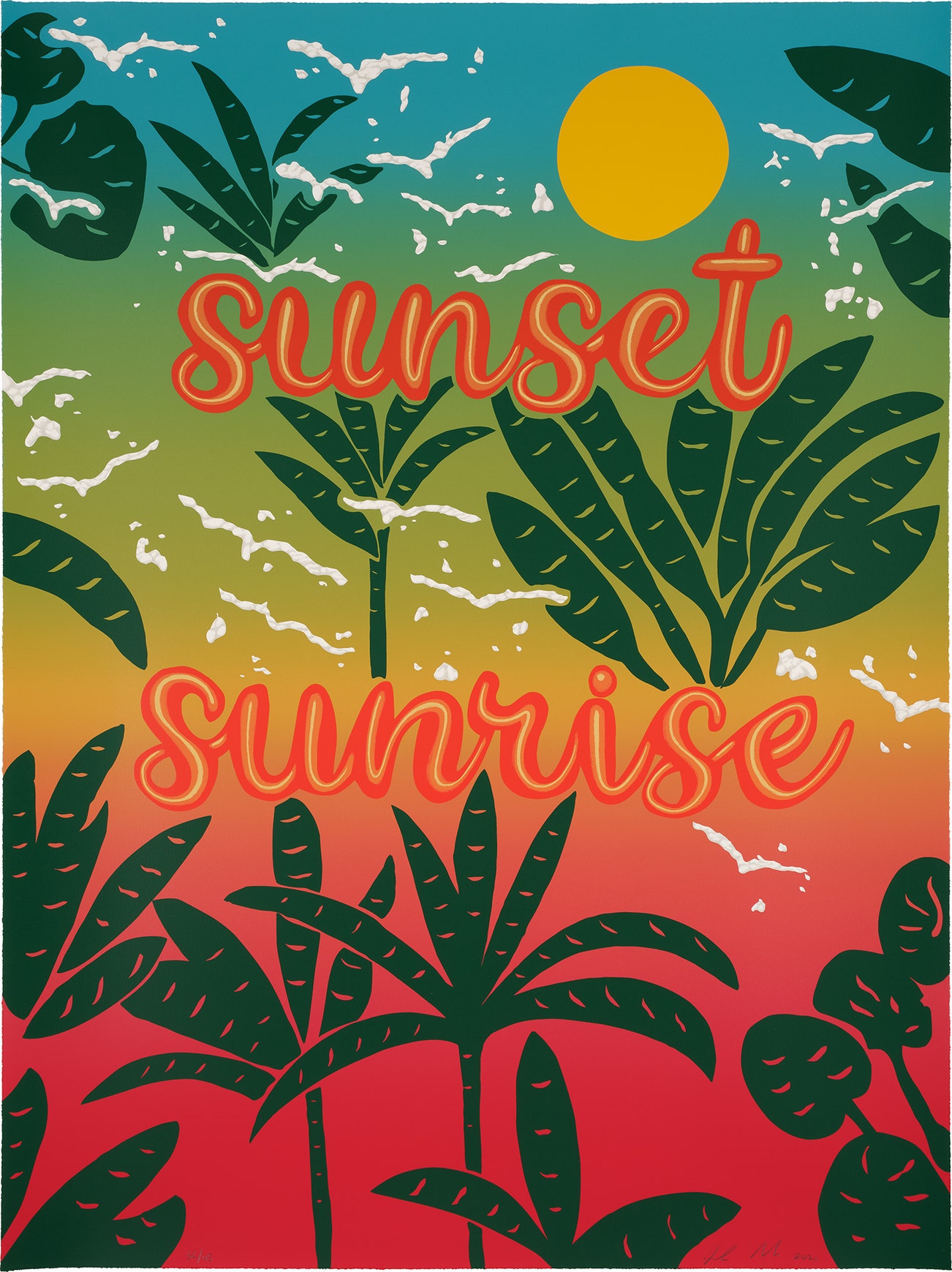 Screenprint in colors, on Rives BFK paper, the full sheet.