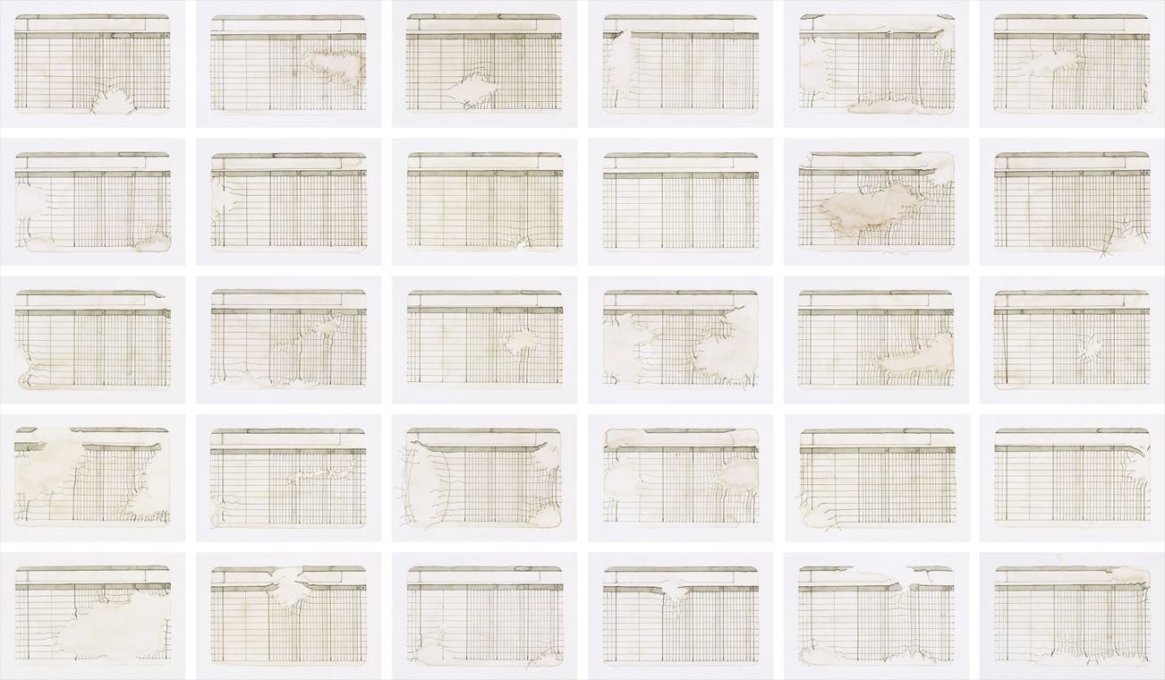 pencil and ink on paper, in 30 parts