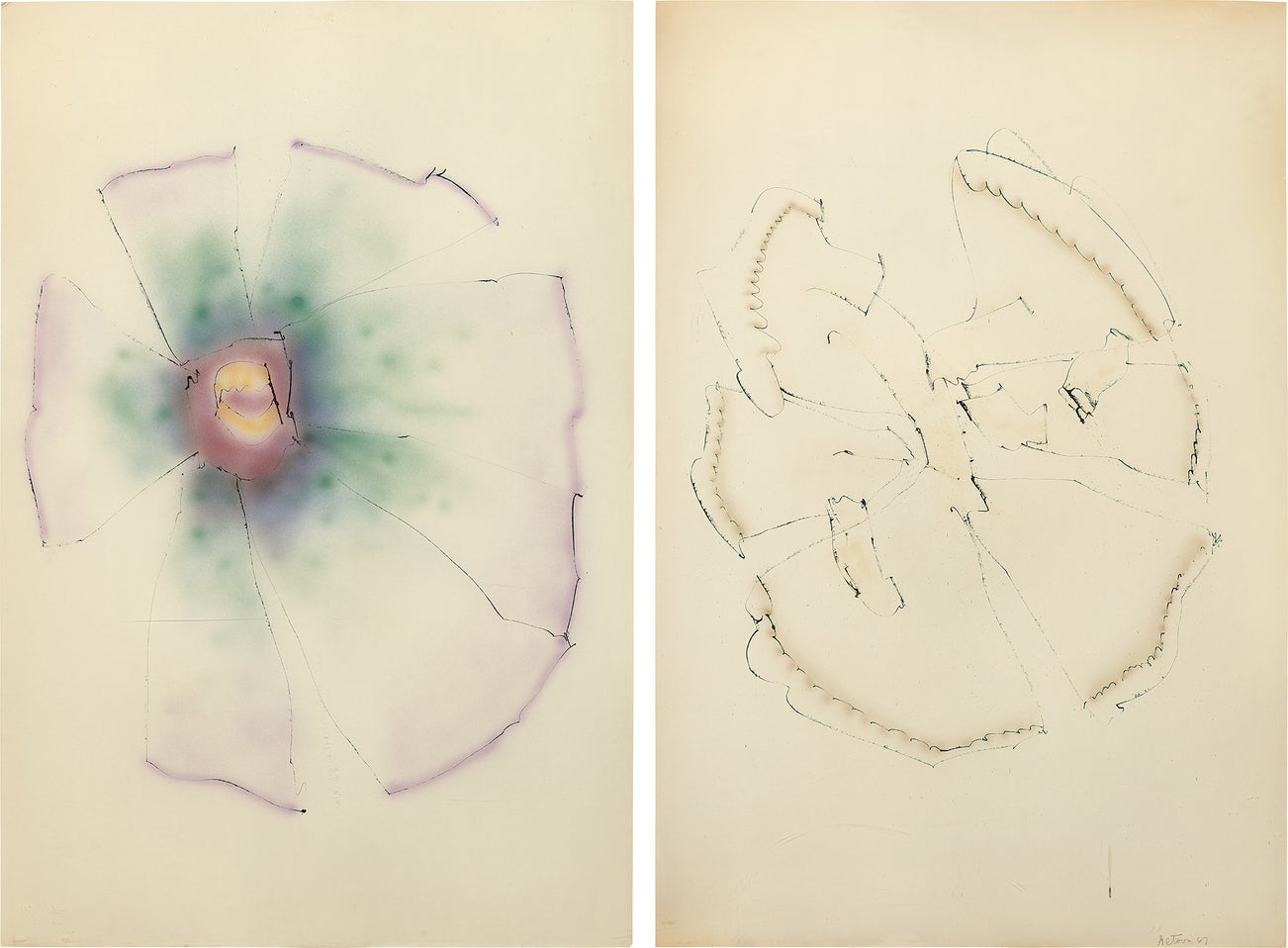 signed and dated "Altoon 67" lower right of right element
