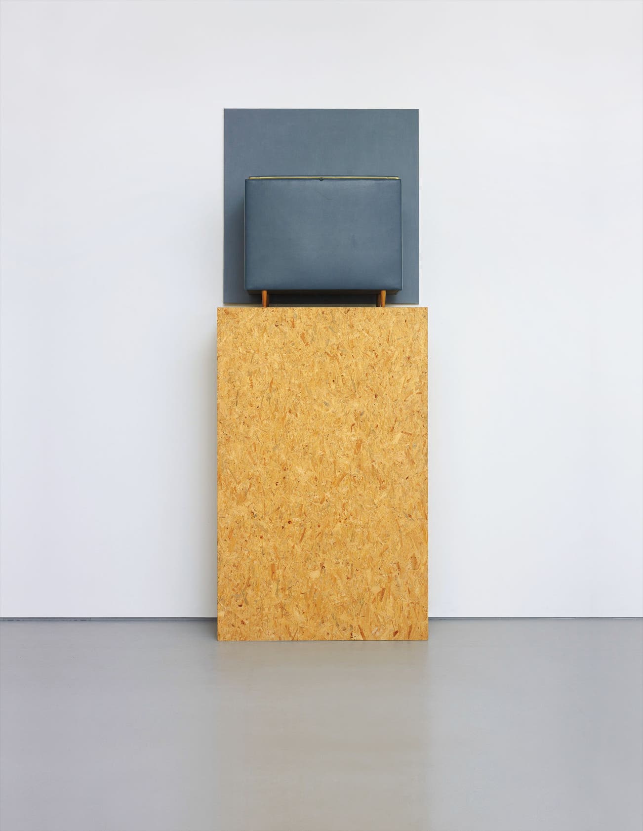 wood, leather chest and acrylic on canvas (in 3 parts)