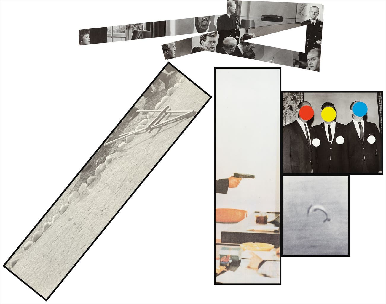 An influential pioneer of Conceptual Art, John Baldessari began appropriating film stills, advertisements, and found photographs in the 1980s to examine the social impact of mass culture. Using photographic excerpts in unorthodox arrangements, he highlights dissonance and gaps in meaning to undermine expectations for how images function. The Fallen Easel employs a framed, multipart composition to suggest its own physical instability and thereby underscore the "fall" of easel painting from the apex of fine art to a grammar of simple color combinations. The colored dots, placed to obscure identities or expressions, additionally frustrate conventional markers of meaning in photographs. Art Institute Chicago website