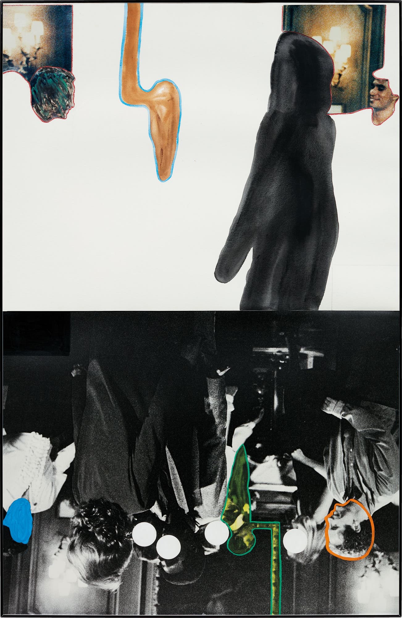 acrylic, oil stick, and graphite on photographs and watercolour paper