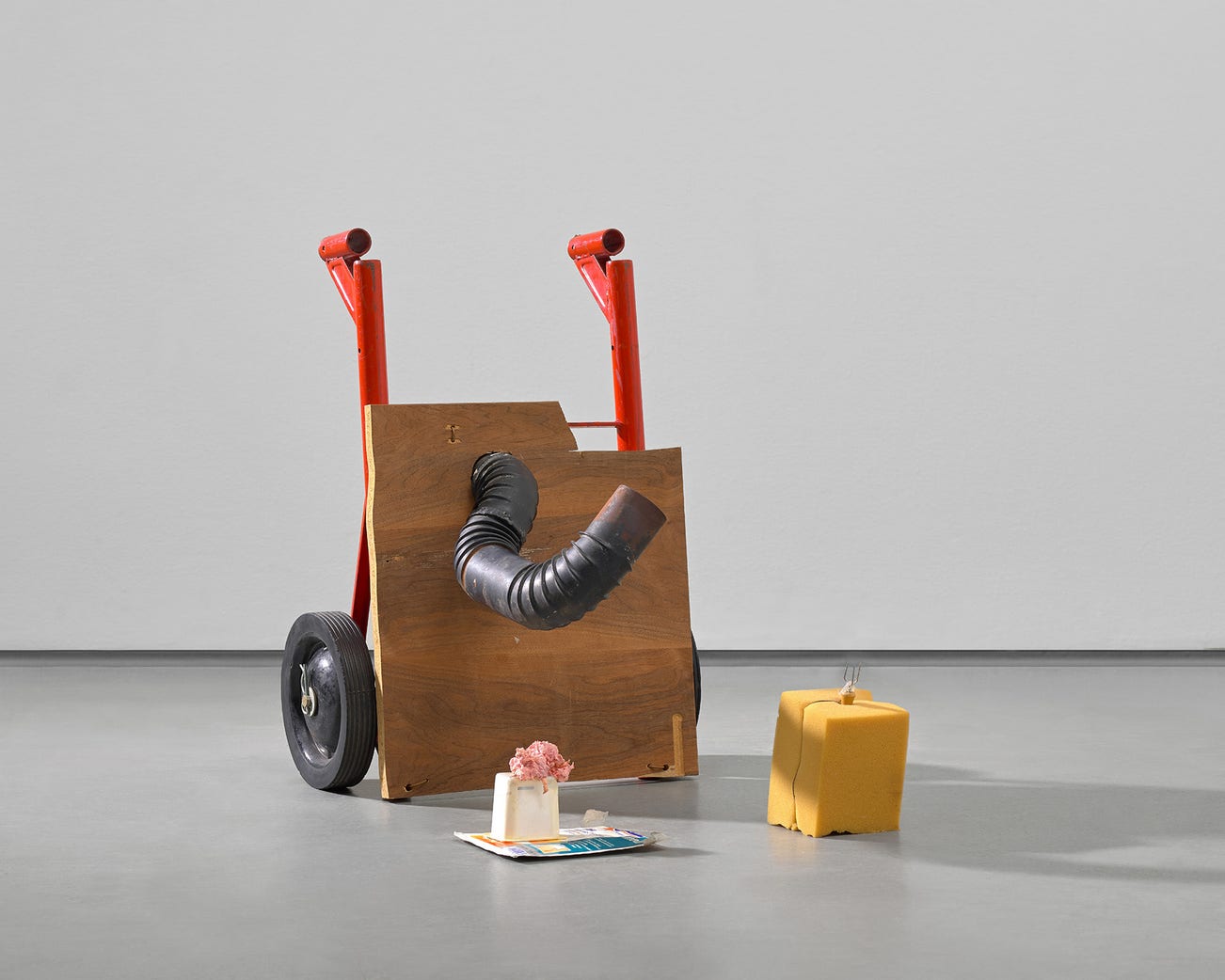 metal, wood, silicon, yoghurt cup, plastic bandage cover and foam, in 3 parts