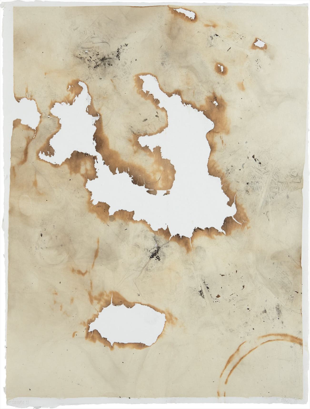 Monotype with branding, on Chine collé to smoked gampi paper, the full sheet.