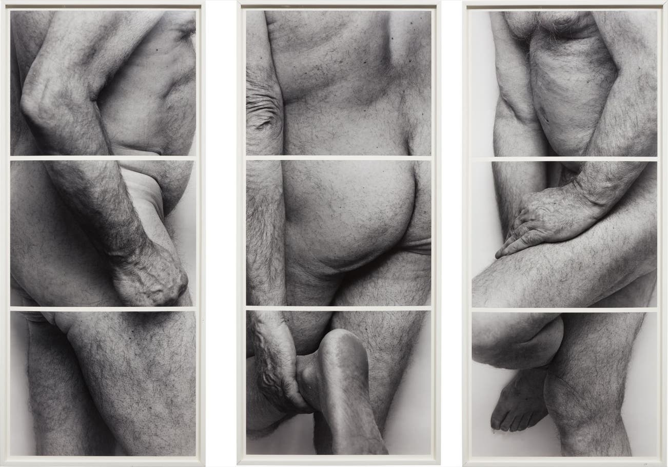Three panels, each comprised of three gelatin silver prints.