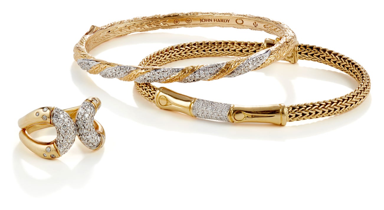 A Diamond and Gold Ring and Set of Bracelets