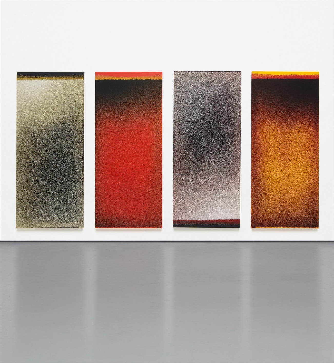 acrylic/flyspeck on canvas over panel, in 4 parts