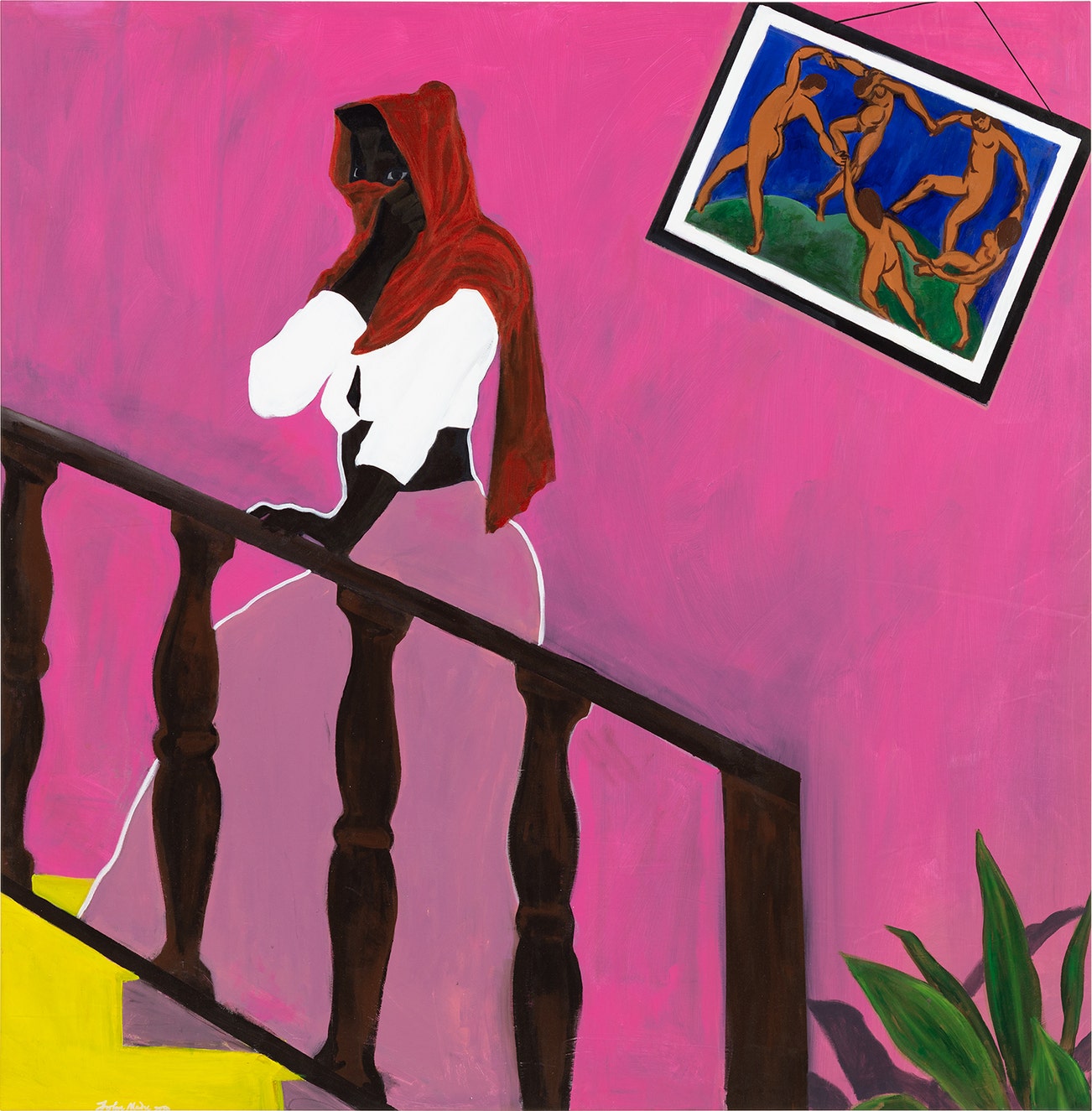 signed and dated "John Madu 2020" lower left; signed, titled and dated "RED VEIL 2020 (NOT A TIME TO DANCE) John Madu" on the reverse