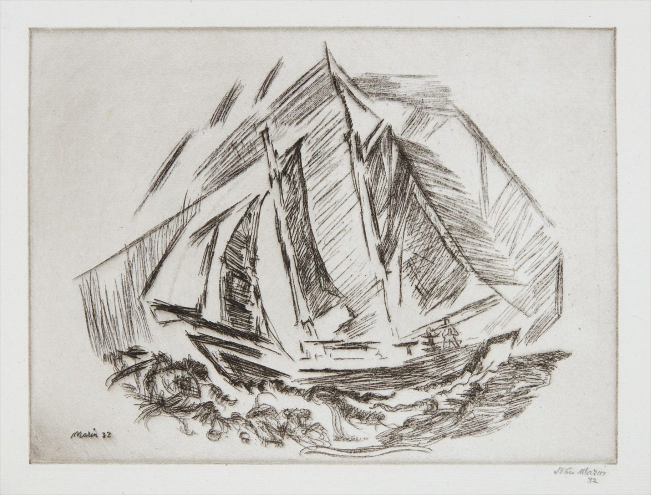 This image was a personal favorite of Marin's and another impression of the print, dedicated to Georgia O'Keefe, bears the artist's notation 'A Beaut'. It was also used for the cover illustration of the catalogue raisonné.