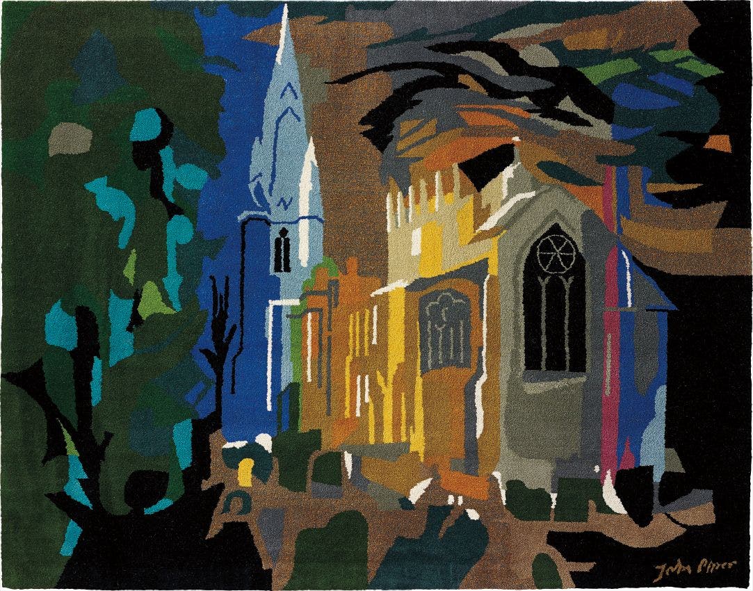 Wool pile tapestry in colours.