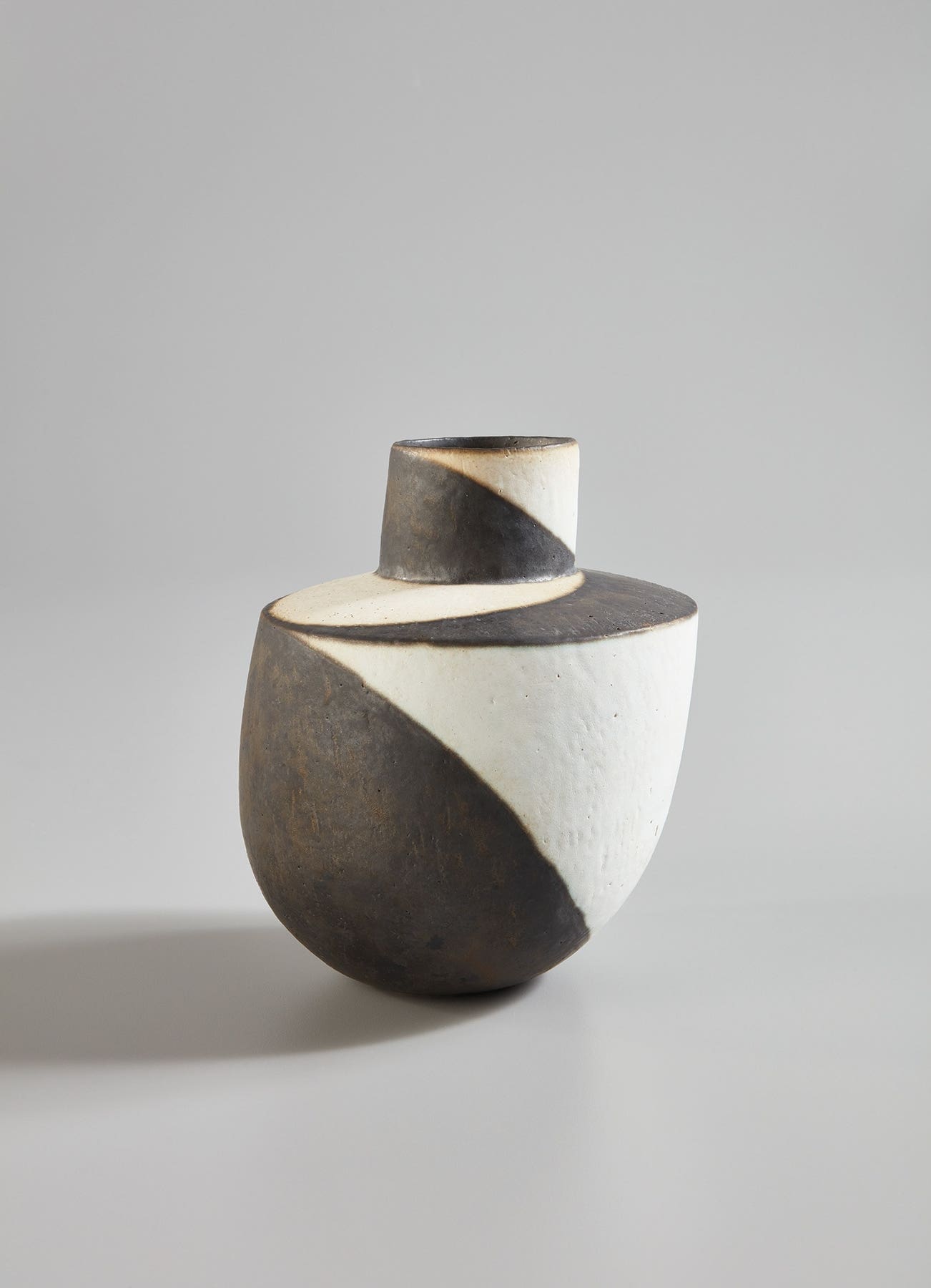 British | 1938Immediately, the patterned surface decoration of John Ward’s ceramics recalls the pre-glazed pottery of ancient Egypt and China, but the pleasingly simple graphic element of his work belies the complex hand-building of each vessel he creates. His experimentation in cutting and rejoining clay bodies results in innovative forms and textured surfaces which are often inspired by the natural elements of the landscape in which he lives and works. Ward’s ceramic artwork is found in the permanent collections of the Musée des Arts Décoratifs, Paris, the Ashmolean Museum, Oxford, and The Museum of Modern Art, New York.