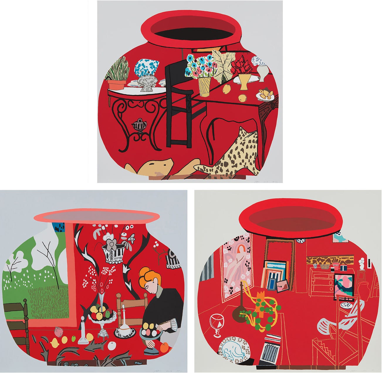 year we’ve been making very detailed prints, around 30 colors, of red Matisse pots.