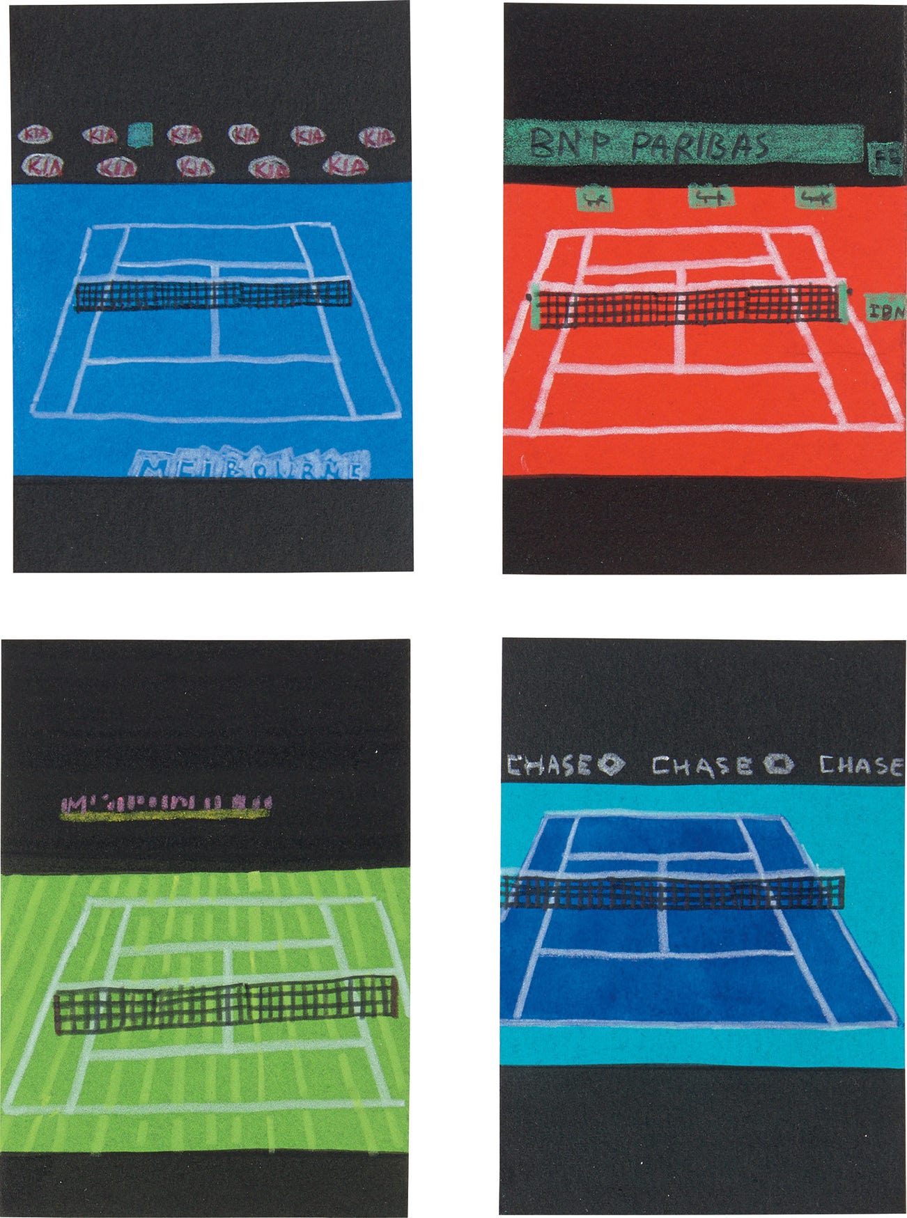 each signed with the artist's initials, titled, respectively numbered and dated "MINI FOUR MAJORS JBRW [1-4] 2018" on the reverse