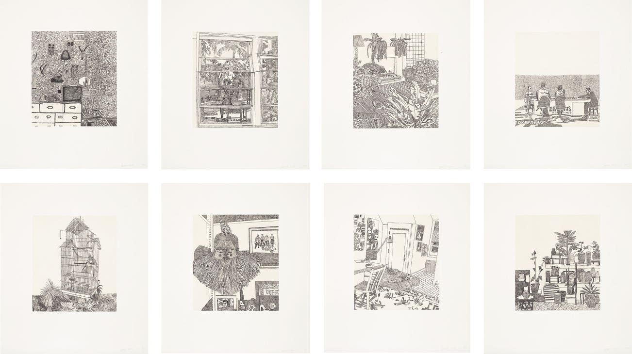 The complete set of eight etchings, with chine-collé to Japanese paper, with full margins, with accompanying exhibition print.