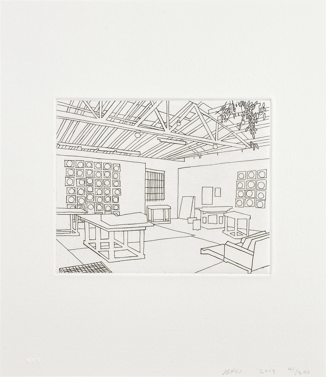 The print signed, dated '2019' and numbered 41/200 in pencil (there were also 25 artist's proofs), published by WKS Editions, Los Angeles (with their blindstamp), the book signed, dated and with a flower drawing in black marker on the title page, the print unframed.