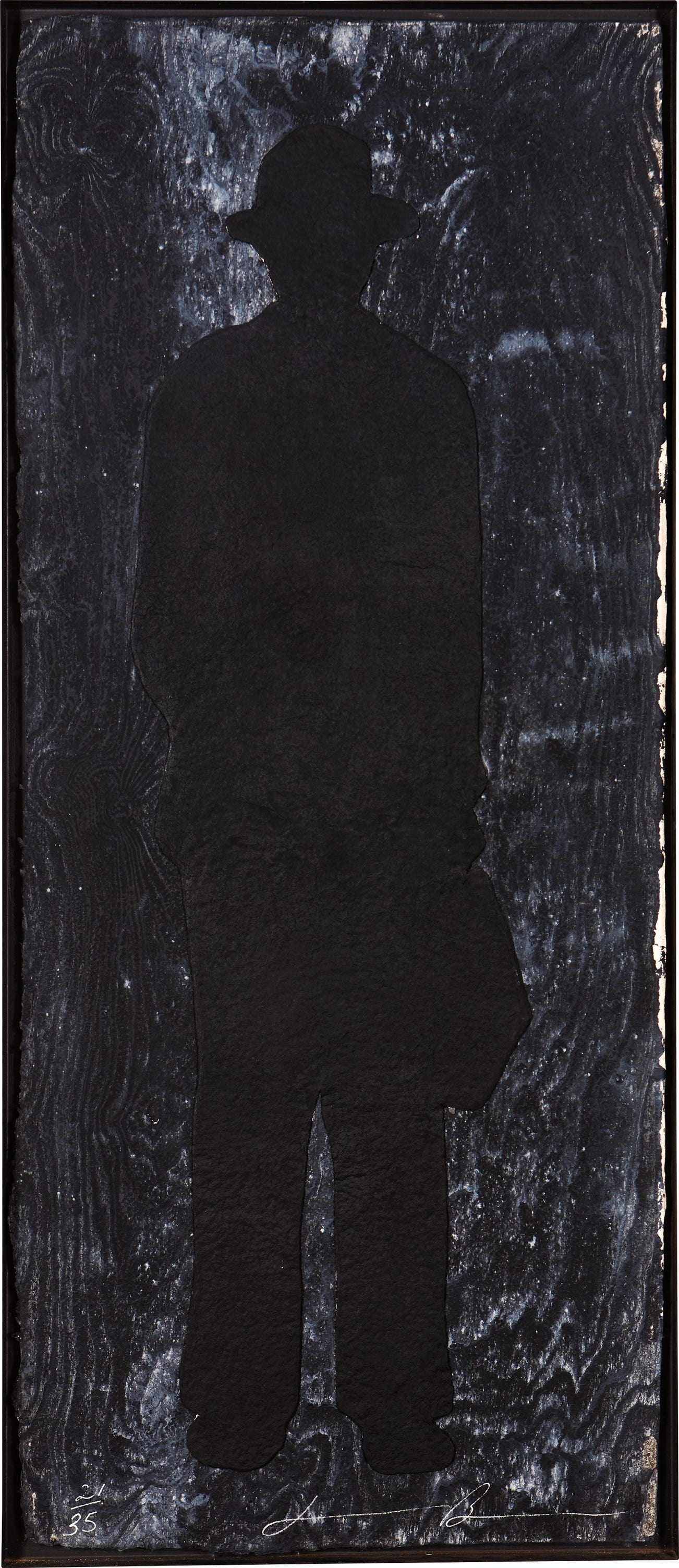 Unique monumental woodcut in black and grey, on La Paloma handmade paper with collage, the full sheet.