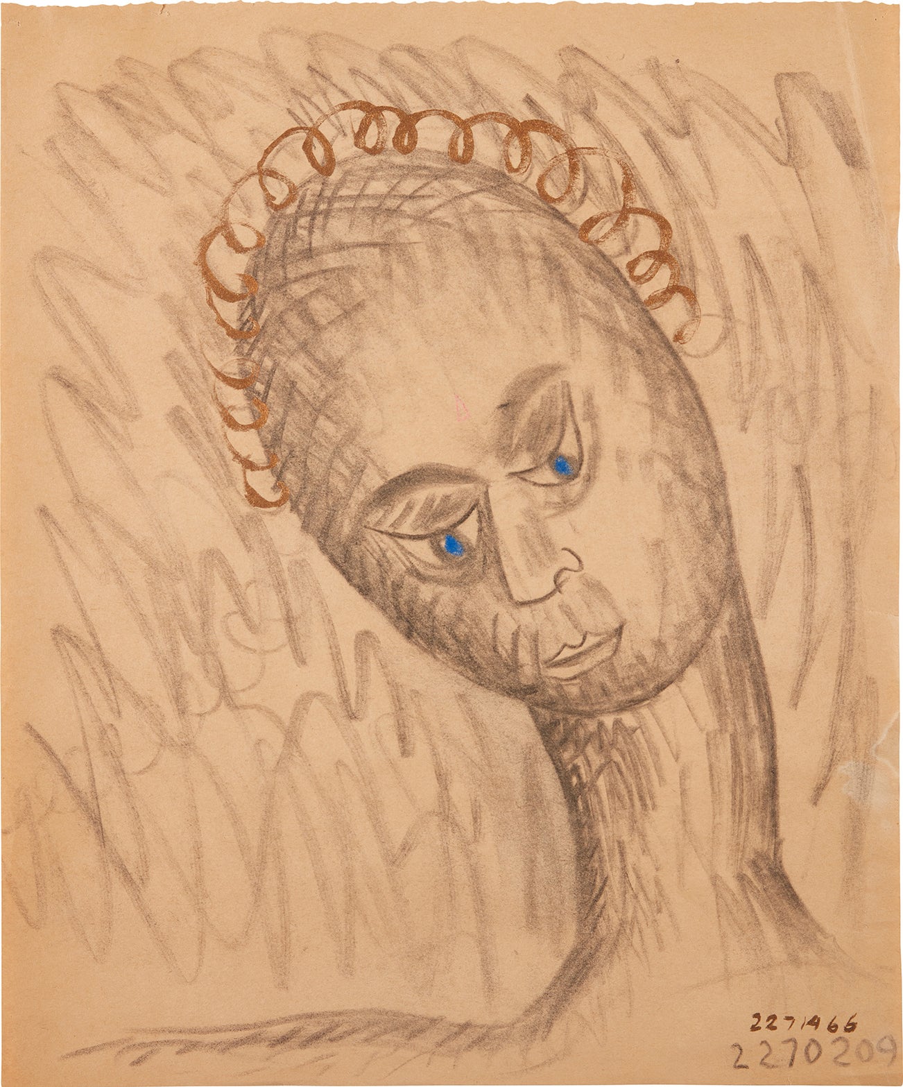 Charcoal, chalk pastel and bronze paint drawing, on wove paper.