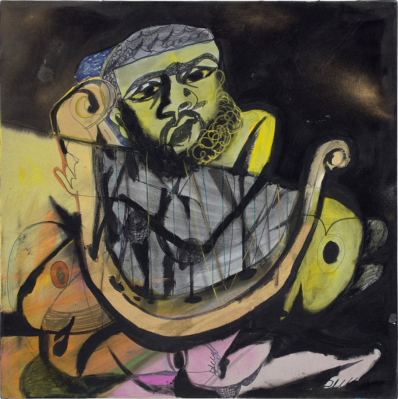 spray paint, acrylic, marker, graphite and pastel on canvas
