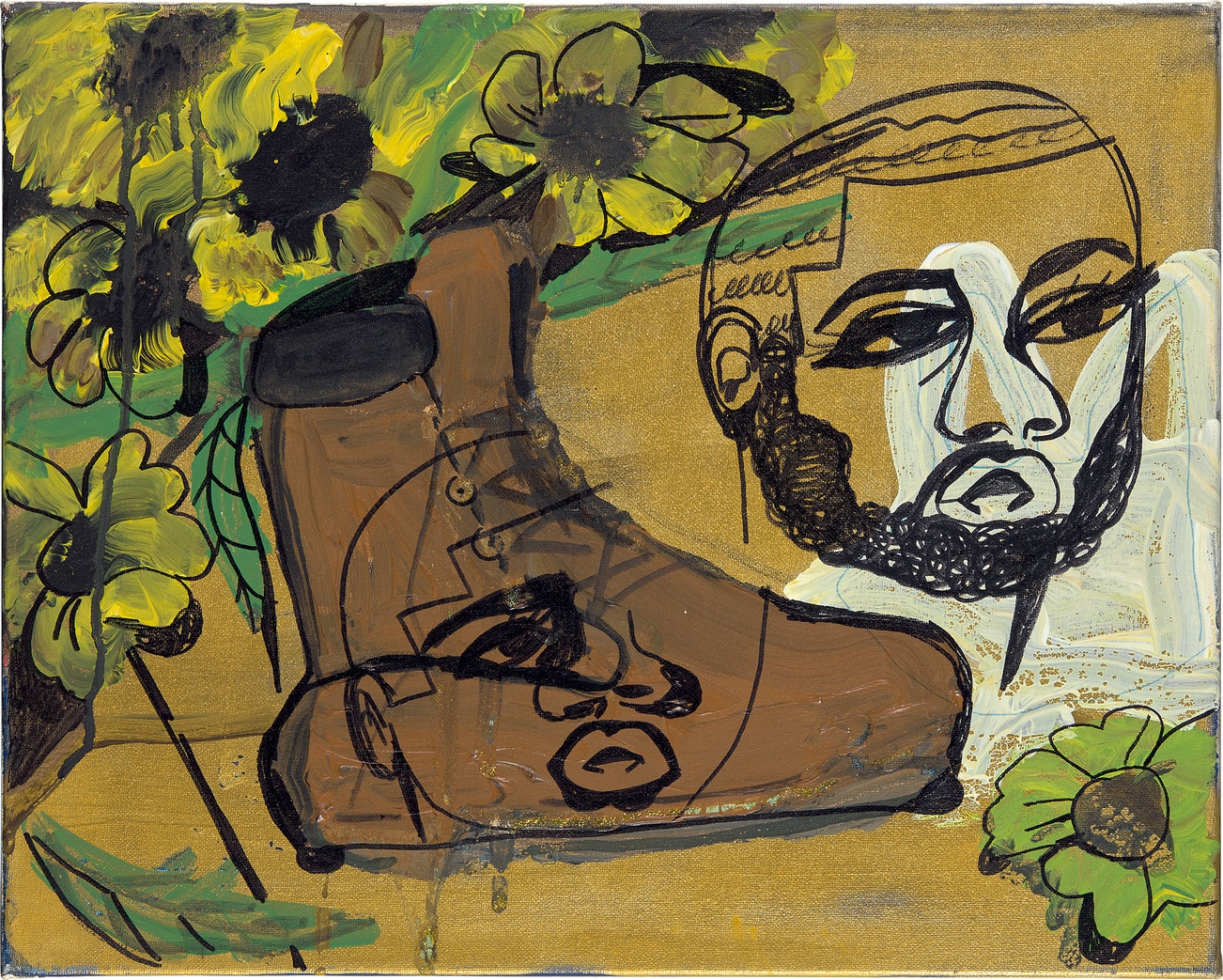 acrylic, spray paint, glitter and marker on canvas