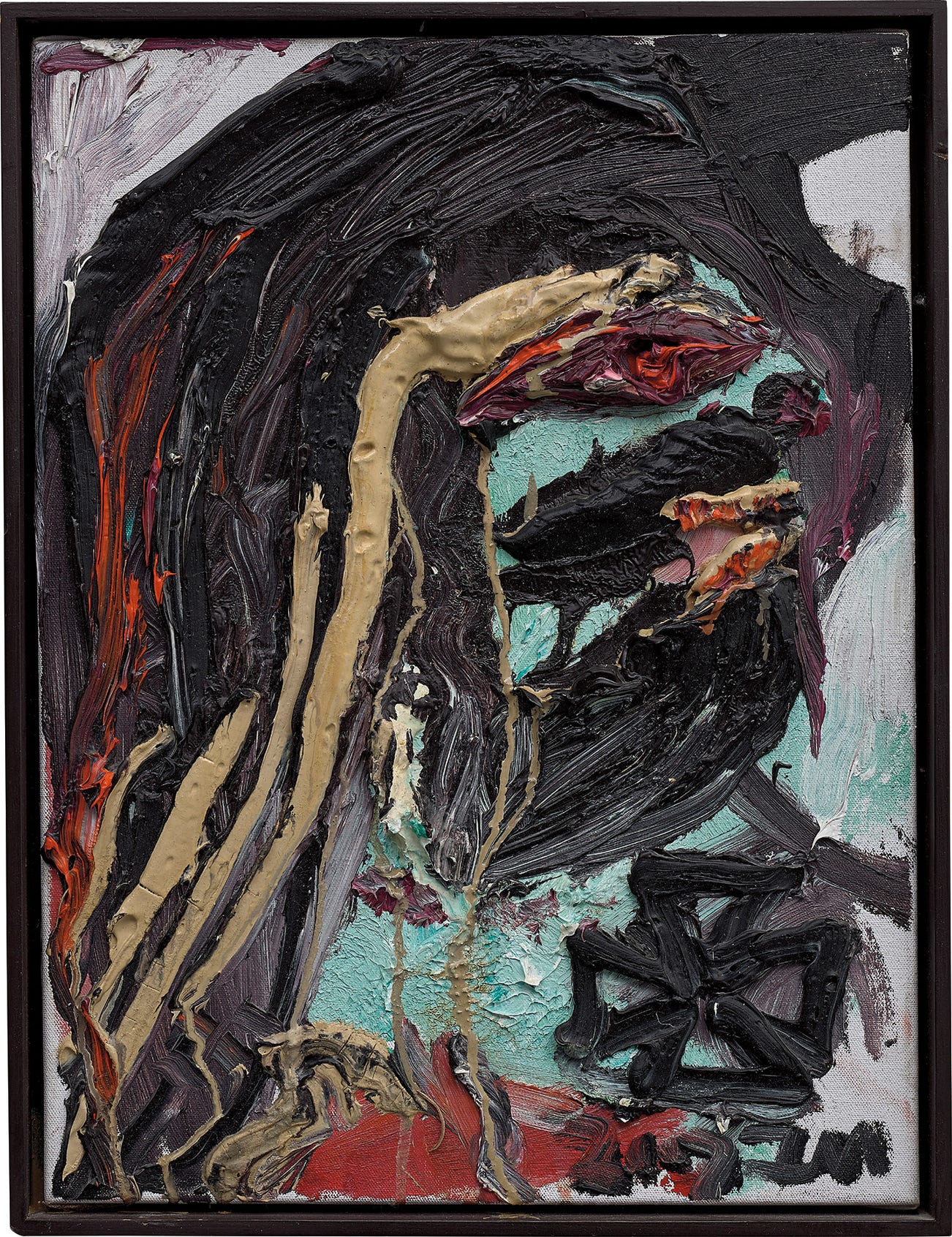 signed with the artist's initials and dated '2002 JM' lower right; further signed, titled and dated 'Ich mit SAUSAGE, J Meese 2002' on the reverse
