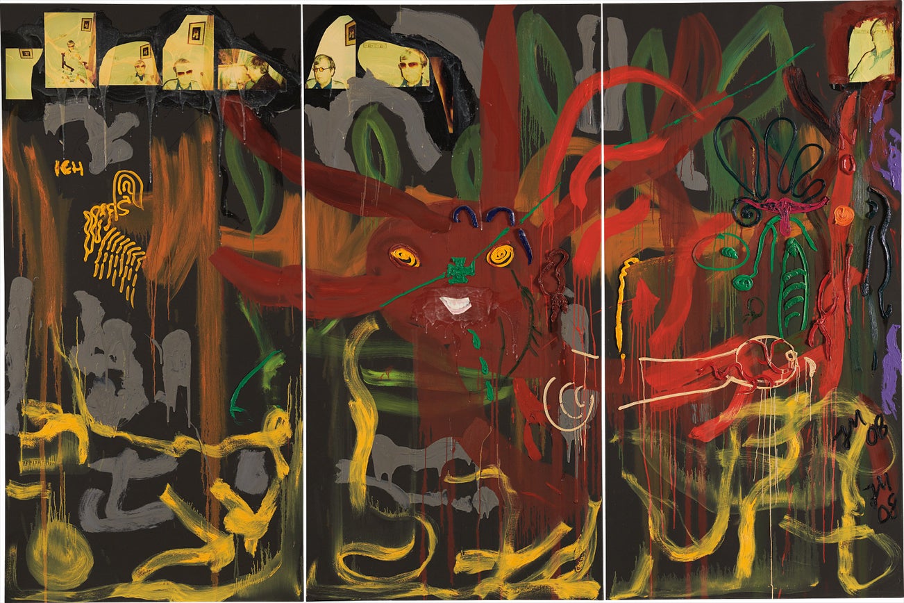 signed, titled and dated '"Nashkätzchen's Menschenzunge des Bananenfroschkaisers Durstys" J Meese '08' on the reverse of each part