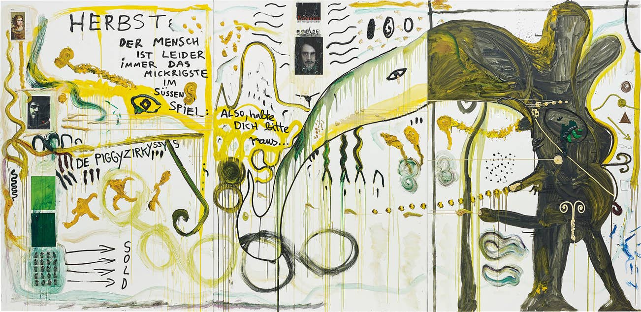 centre part) signed, inscribed, titled and dated ' J Meese 07 mitte OH, Herbst, DU LEBST, WIE SAU, DANKE IHR TYRANNISchen J Meese 07' on the reverse