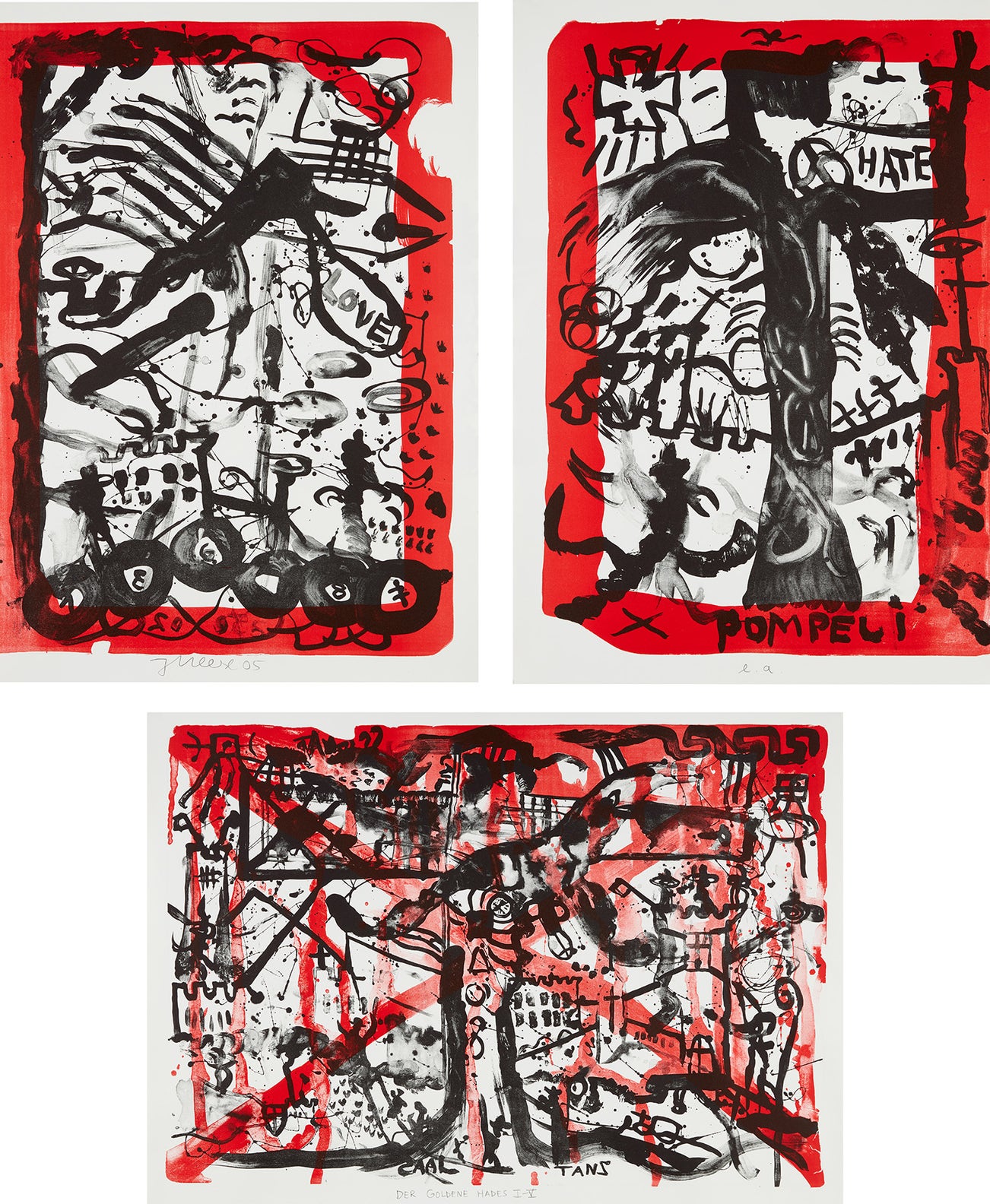 The complete set of three lithographs in colors, on Rives BFK paper, the full sheets and with full margins, lacking the original grey linen portfolio.