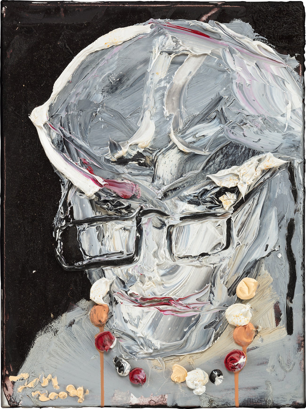 initialed and dated "JM 2004" lower left; signed, titled and dated "JMeese 2004 Goldmutter mit schwarzer Brille, braunlich-bunter Perlenkette und röttlicher Augenbraue" on the reverse; further signed and dated "JMeese 2004" on chromogenic print attached to the reverse
