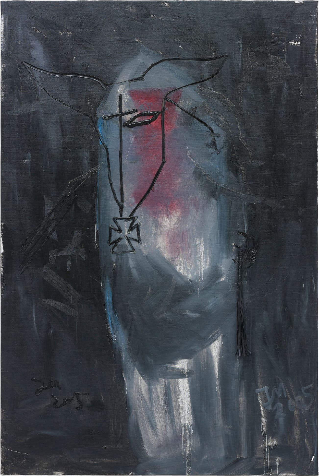 Installed and dated ‘JM 2005’ lower left and lower right; signed, titled and dated ‘Der Peitschen-Knabe “Knab Knabson” J Meese 2005’ on the reverse.