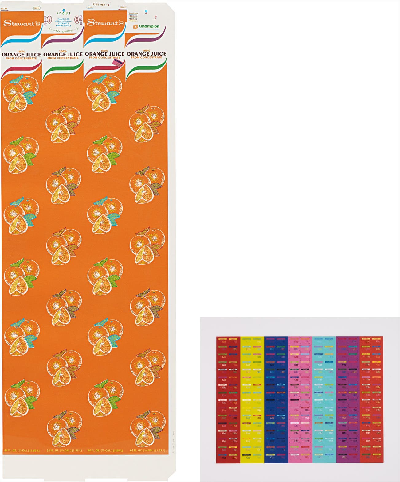 Two iris prints in colors (one with collage), on Strathmore paper, the full sheet and with full margins,