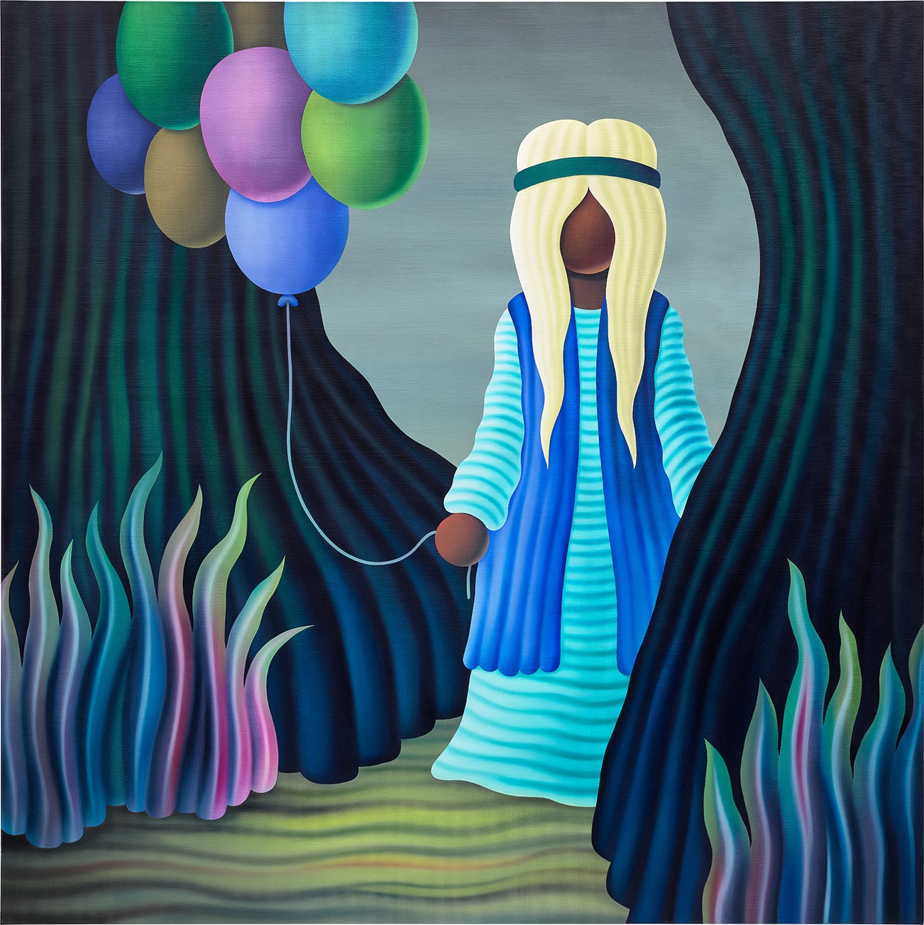 SpanishJordi Ribes (b.1972) is a contemporary painter based in Barcelona, Spain. The artist originally studied graphic design before studying painting at the University of Barcelona. He is known for his faceless figures found in lush settings. He uses rich jewel-toned paint colors to depict scenes detached from the real world.