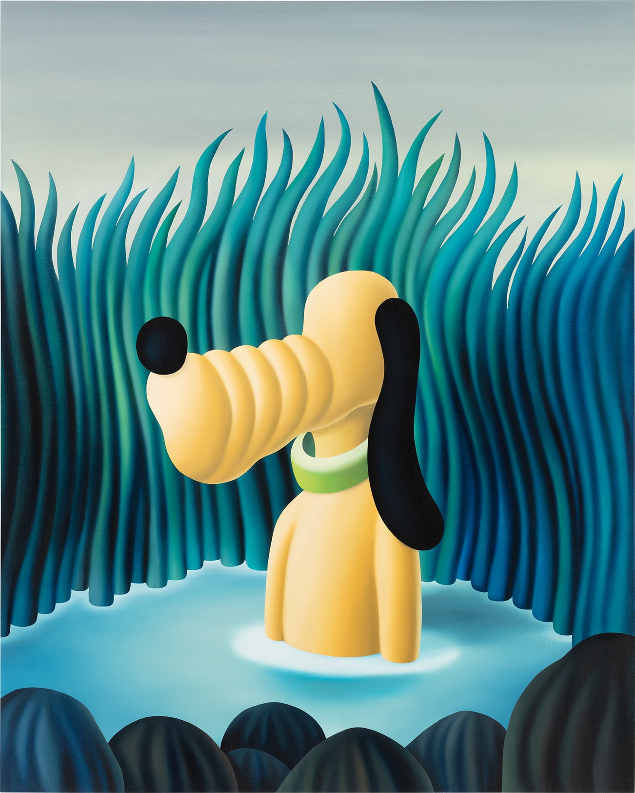 SpanishJordi Ribes (b.1972) is a contemporary painter based in Barcelona, Spain. The artist originally studied graphic design before studying painting at the University of Barcelona. He is known for his faceless figures found in lush settings. He uses rich jewel-toned paint colors to depict scenes detached from the real world.