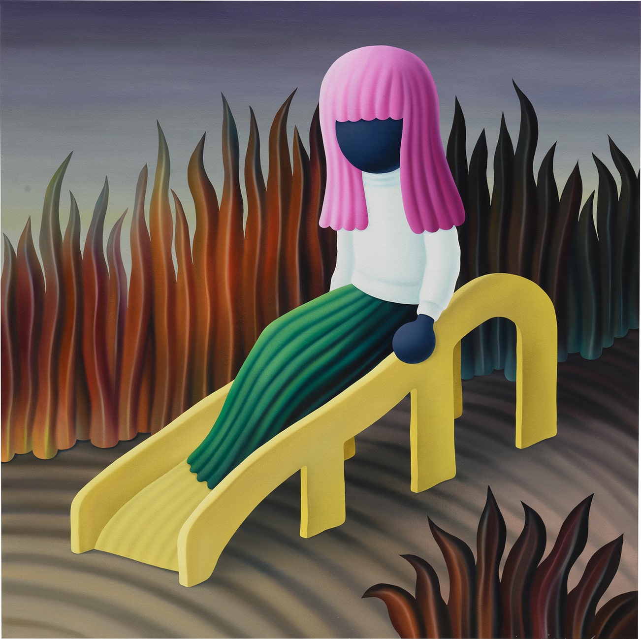 SpanishJordi Ribes (b.1972) is a contemporary painter based in Barcelona, Spain. The artist originally studied graphic design before studying painting at the University of Barcelona. He is known for his faceless figures found in lush settings. He uses rich jewel-toned paint colors to depict scenes detached from the real world.