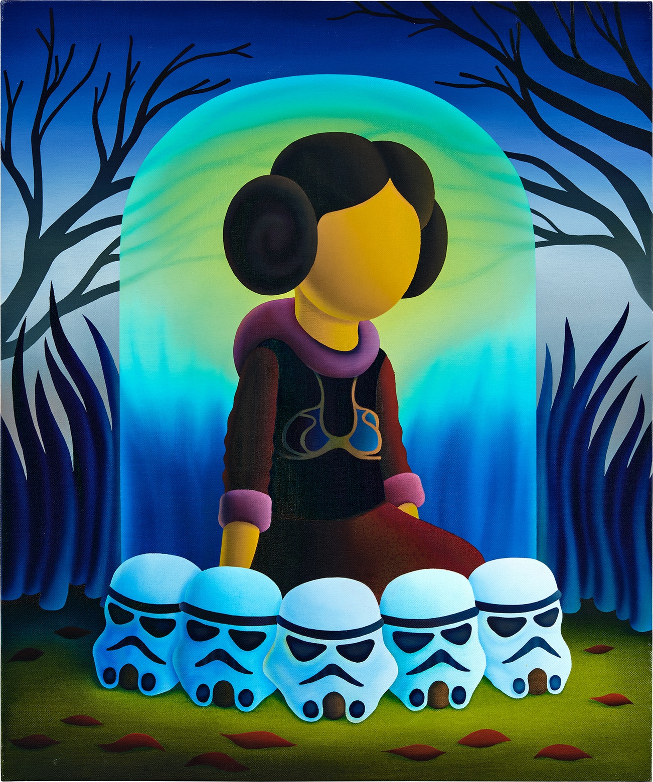 SpanishJordi Ribes (b.1972) is a contemporary painter based in Barcelona, Spain. The artist originally studied graphic design before studying painting at the University of Barcelona. He is known for his faceless figures found in lush settings. He uses rich jewel-toned paint colors to depict scenes detached from the real world.