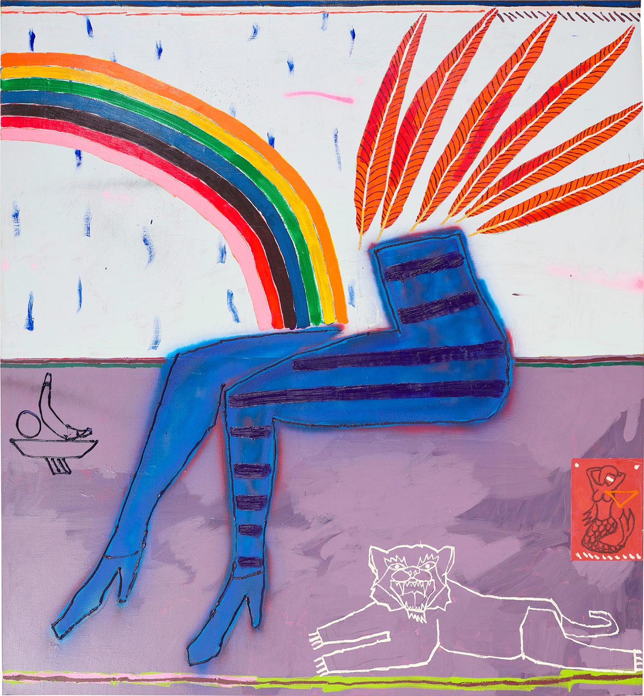 oil, acrylic, spray paint and fabric collage on canvas