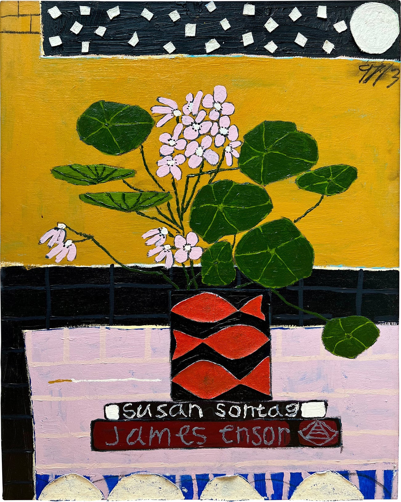oil, collage, acrylic and enamel on canvas, in artist's frame