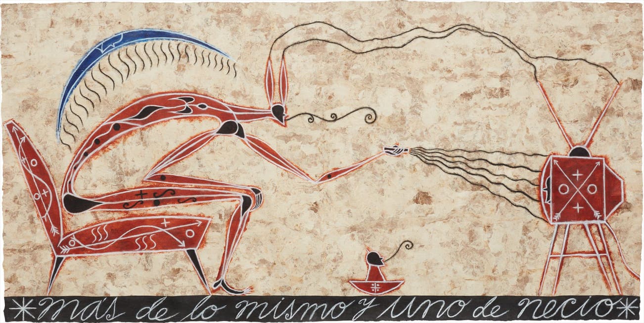 ink, conte crayon, white chalk and pastel on amate paper