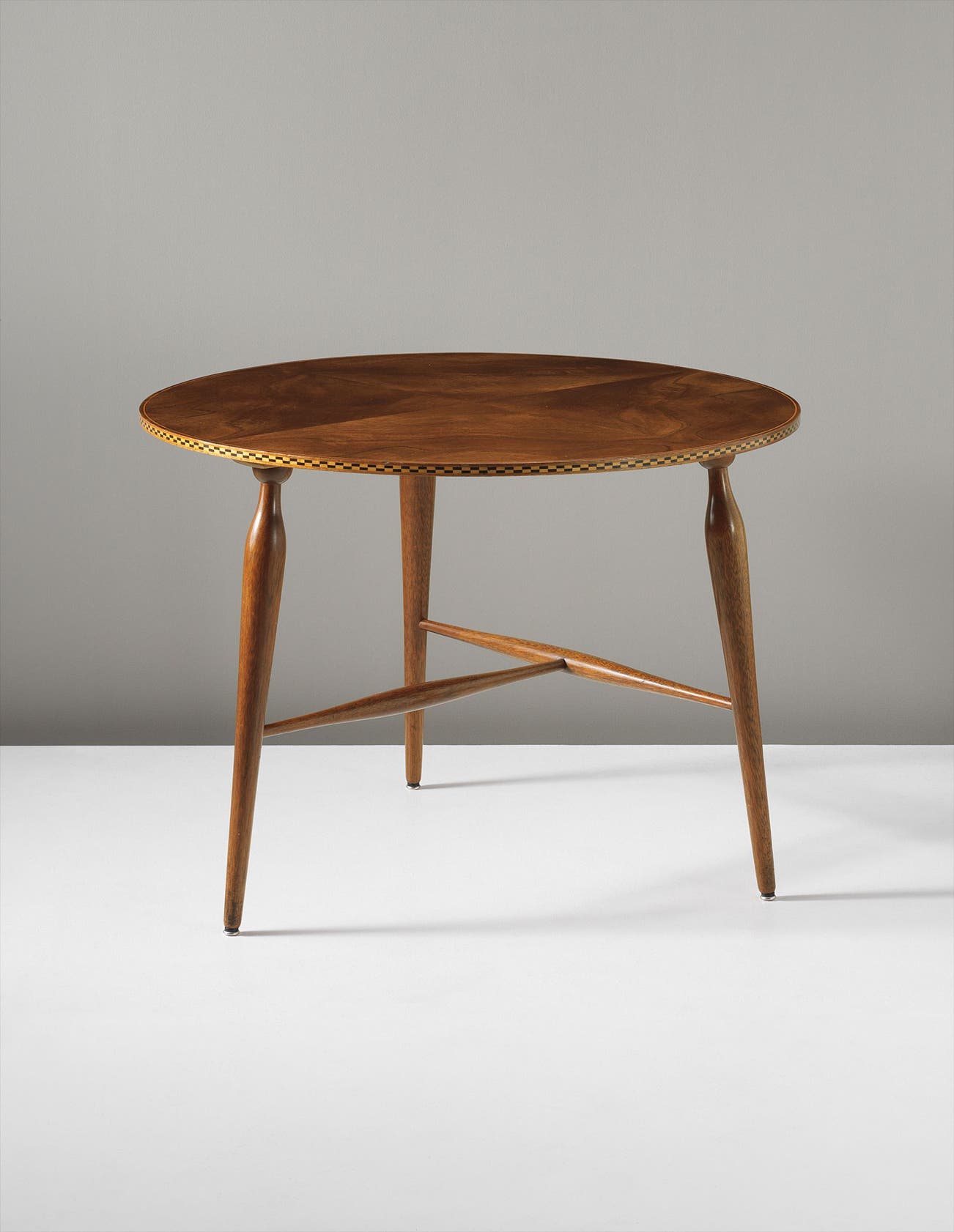 Burr elm-veneered wood, walnut, ebony, fruit wood.